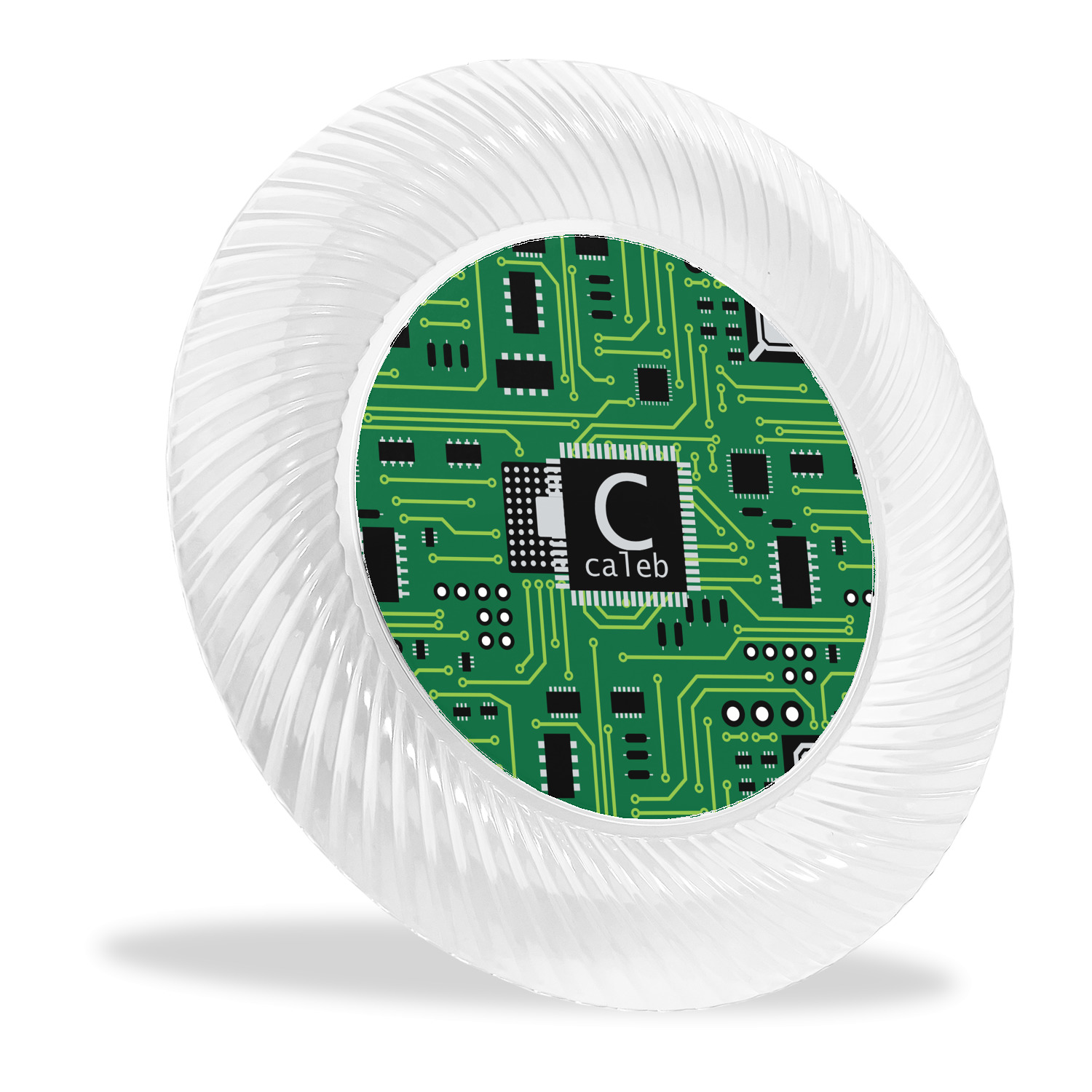 Made from a beautiful clear plastic plate as a base, your design is printed to the underside of the plate. The outside of these disposable plates has a classic swirl texture to it for a high quality look and feel.