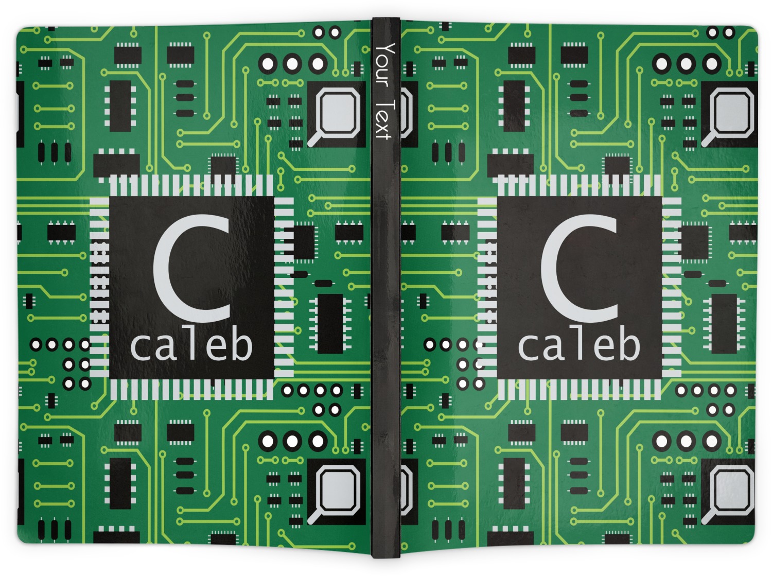 This circuit board design is perfect for the geek in your life. It was designed for the geeks at our workplace who complained that there we did not have any designs for them. Now Caleb sports around a trifold wallet and a clip board in this design!