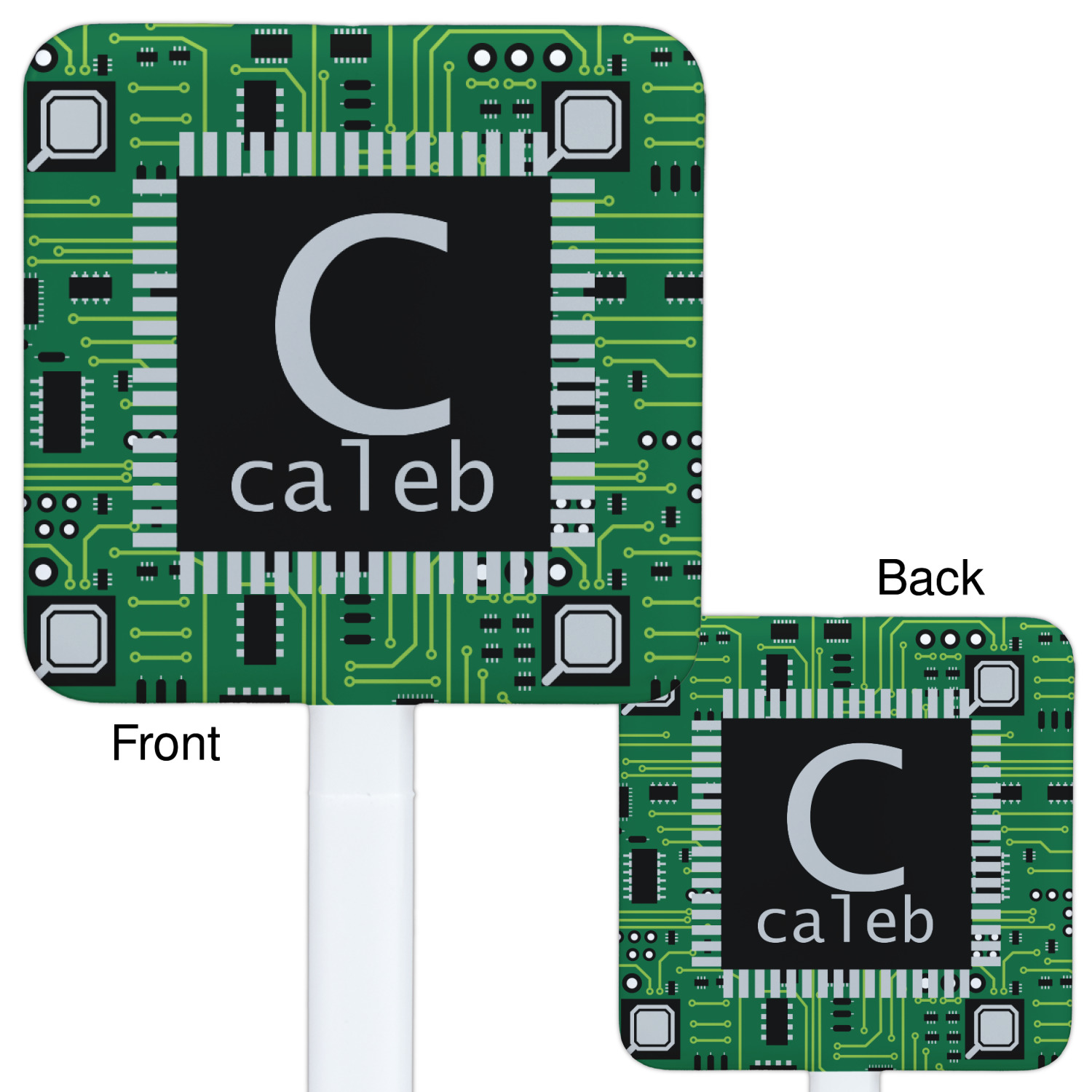 We feature the classic green color, along with a chip for your personalization. We have featured an initial and name style for the personalization.