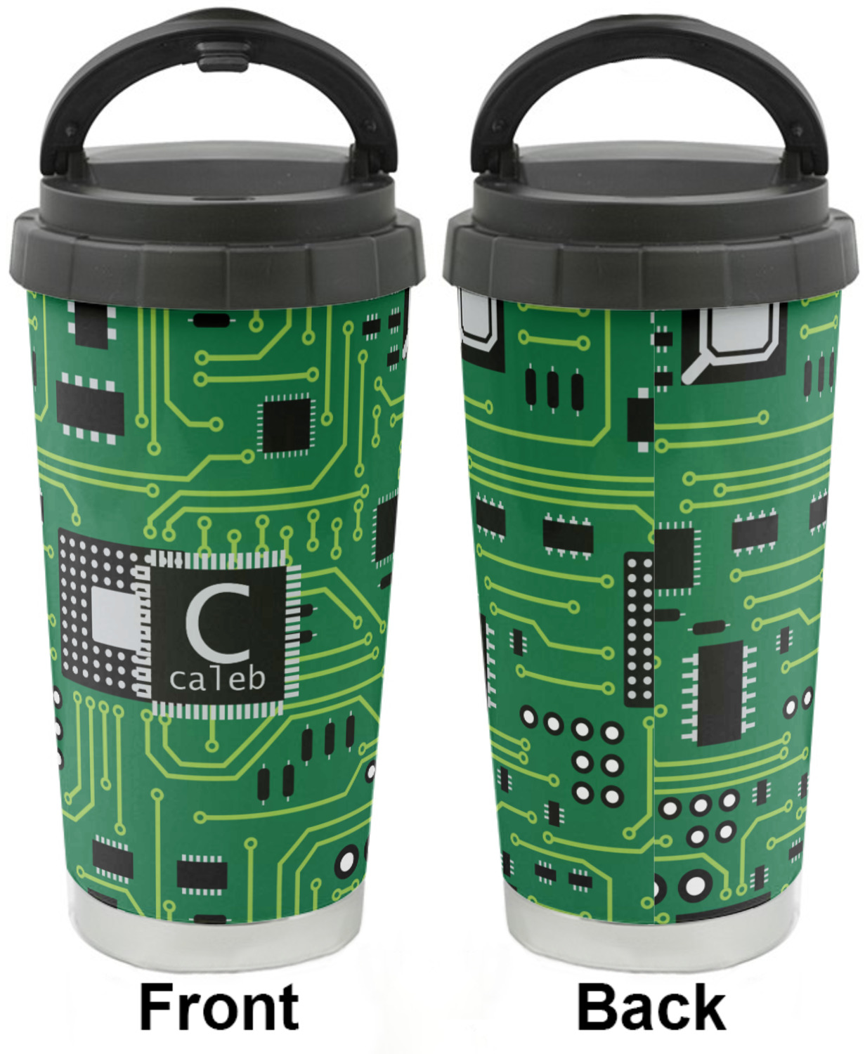 This sleek and tapered 16 oz stainless steel travel cup is a perfect fit in the hand. With the strip of visible stainless steel on the bottom, you'll be feeling classy!