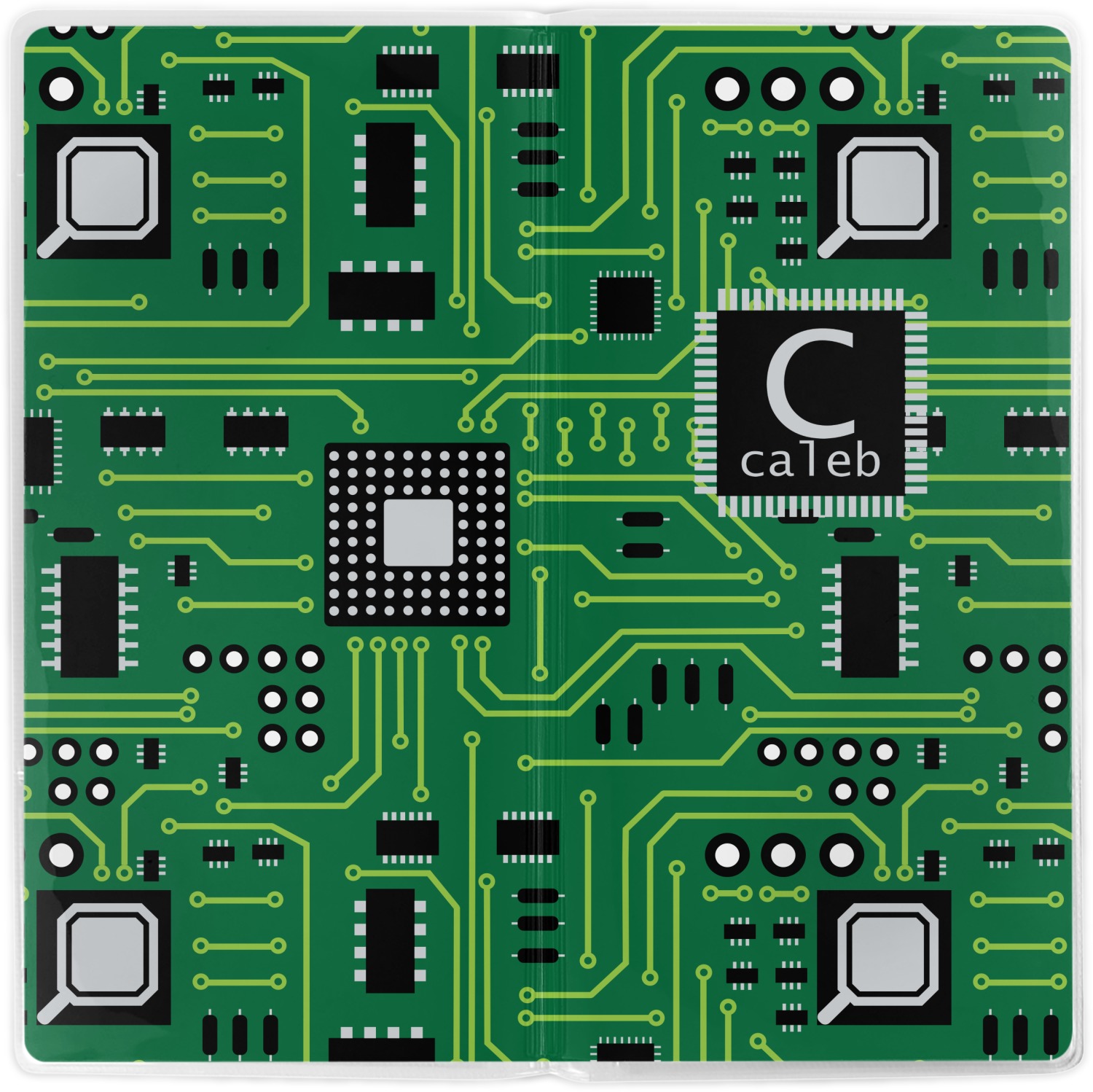 This circuit board design is perfect for the geek in your life. It was designed for the geeks at our workplace who complained that there we did not have any designs for them. Now Caleb sports around a trifold wallet and a clip board in this design!