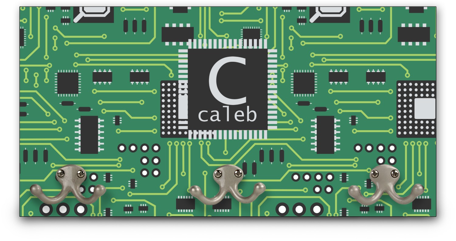 This coat rack is the perfect way to add some personality to your wall or entryway. The board is made of a strong maple that is approximately 16" x 8". The three 2-prong hooks are a sturdy metal that have three screws attaching them to the board. Your design is printed right onto the front of the board while the back and sides are a simple black.