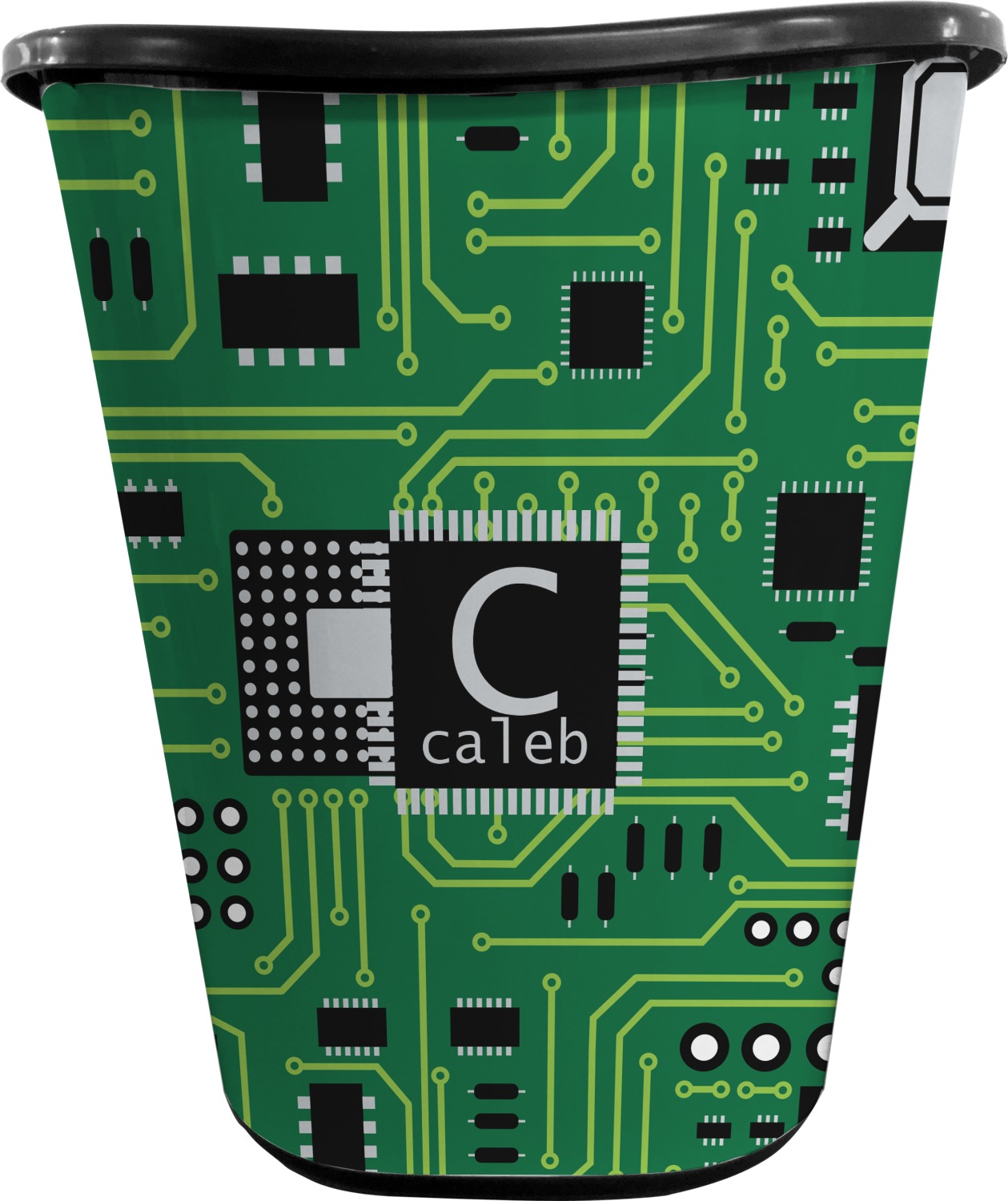 This circuit board design is perfect for the geek in your life. It was designed for the geeks at our workplace who complained that there we did not have any designs for them. Now Caleb sports around a trifold wallet and a clip board in this design!