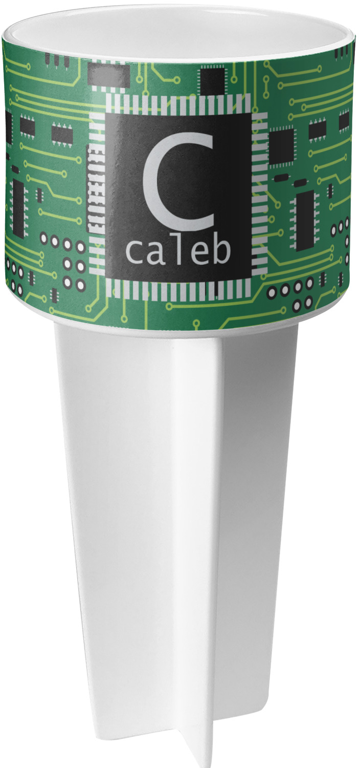This cup holder has a large stake at its bottom that anchors it to the sand or ground below, while the cup holder rests above the stake. The entire drink holder is made of durable plastic and displays your customization around the cup holder portion. We sell these personalized beach spikers in two different colors: black and white.