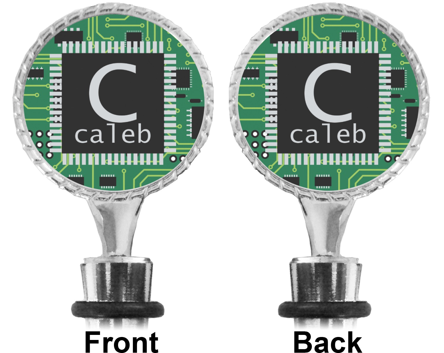 The top part of your bottle stopper is comprised of a zinc ring that displays your customization(s) in its middle, on both sides. The ring is heavy duty, with a bright chrome finish. The body of the wine stoppers have two silicone rings to provide an airtight seal. These wine bottle stoppers measure at 1.625" L x 0.8125" W x 4.625" H; your custom wine stopper is meant to fit into most standard-sized wine bottles.