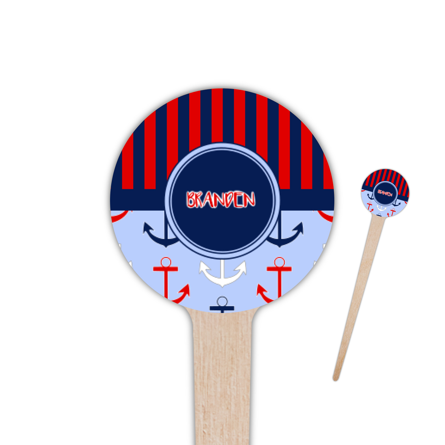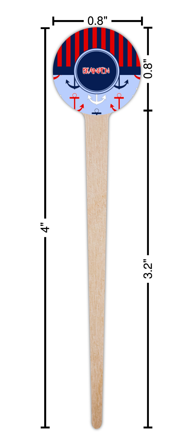 Coastal / Beach Style Designs for 4" Round Wooden Food Picks - Double-Sided