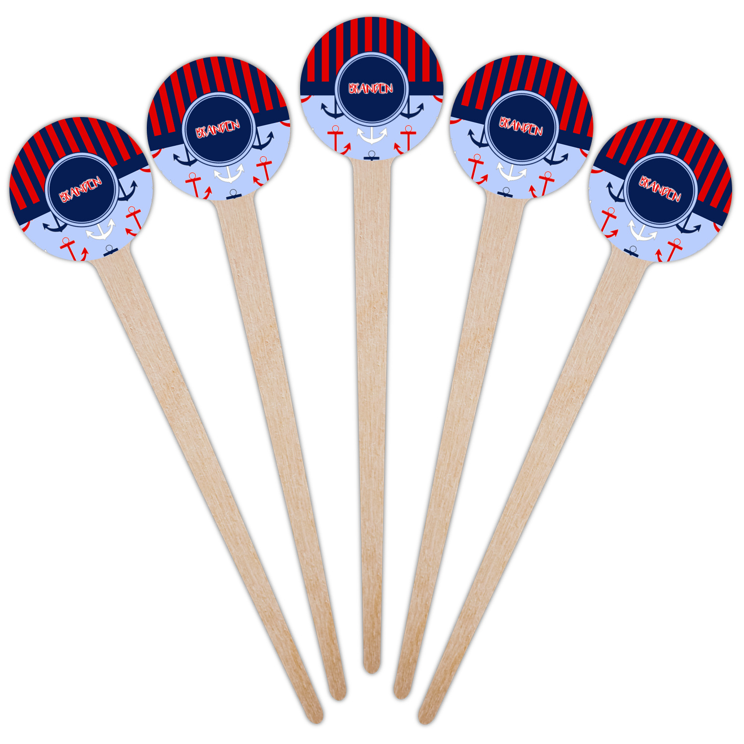 Coastal / Beach Style Designs for 4" Round Wooden Food Picks - Single-Sided