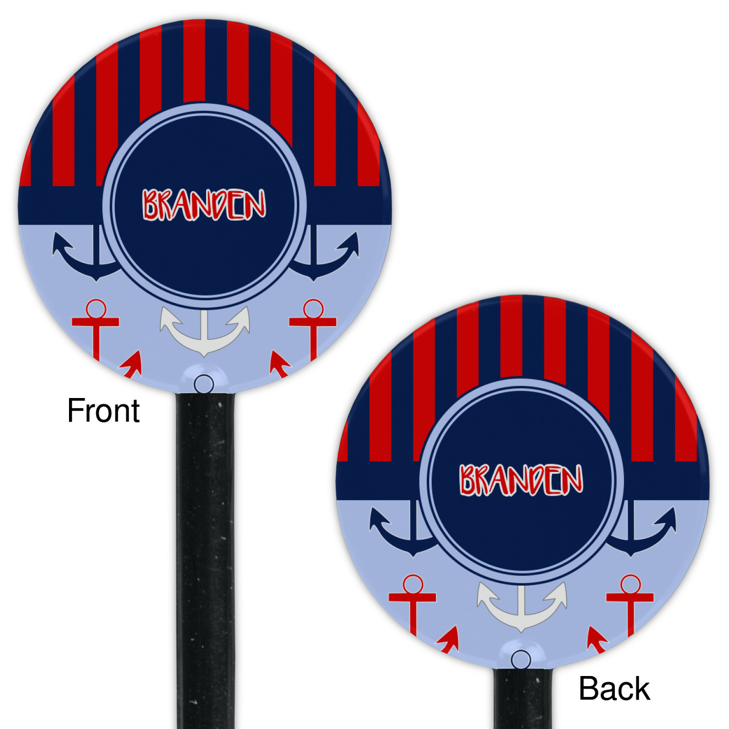 Coastal / Beach Style Designs for 5.5" Round Plastic Stir Sticks - Black - Double-Sided