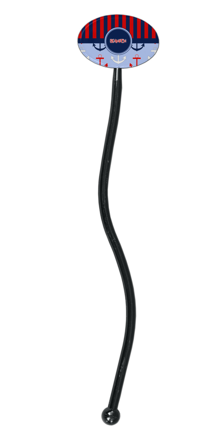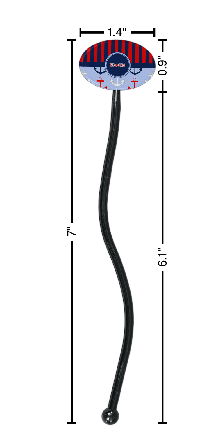 Coastal / Beach Style Designs for 7" Oval Plastic Stir Sticks - Black - Single-Sided