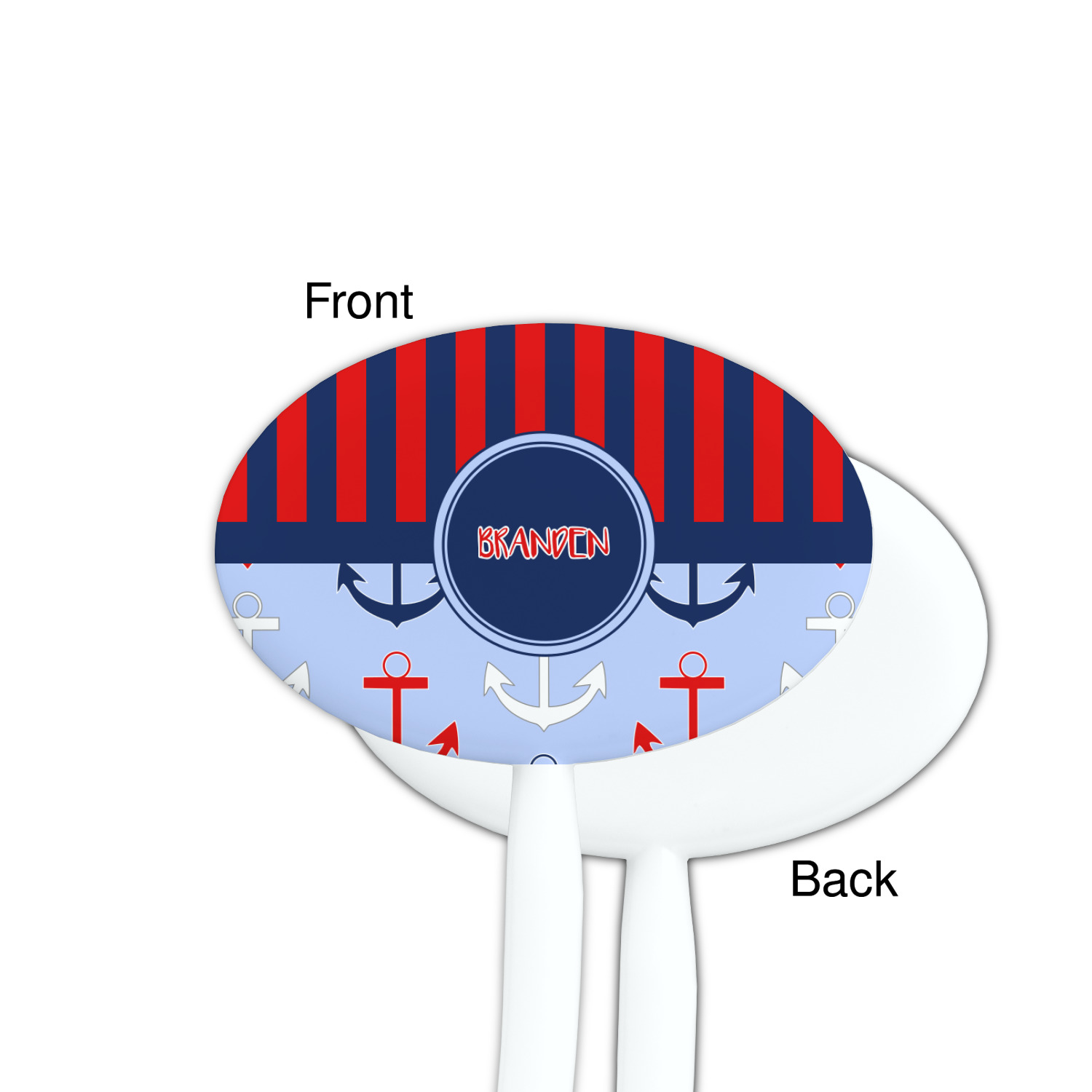 Coastal / Beach Style Designs for 7" Oval Plastic Stir Sticks - White - Single-Sided