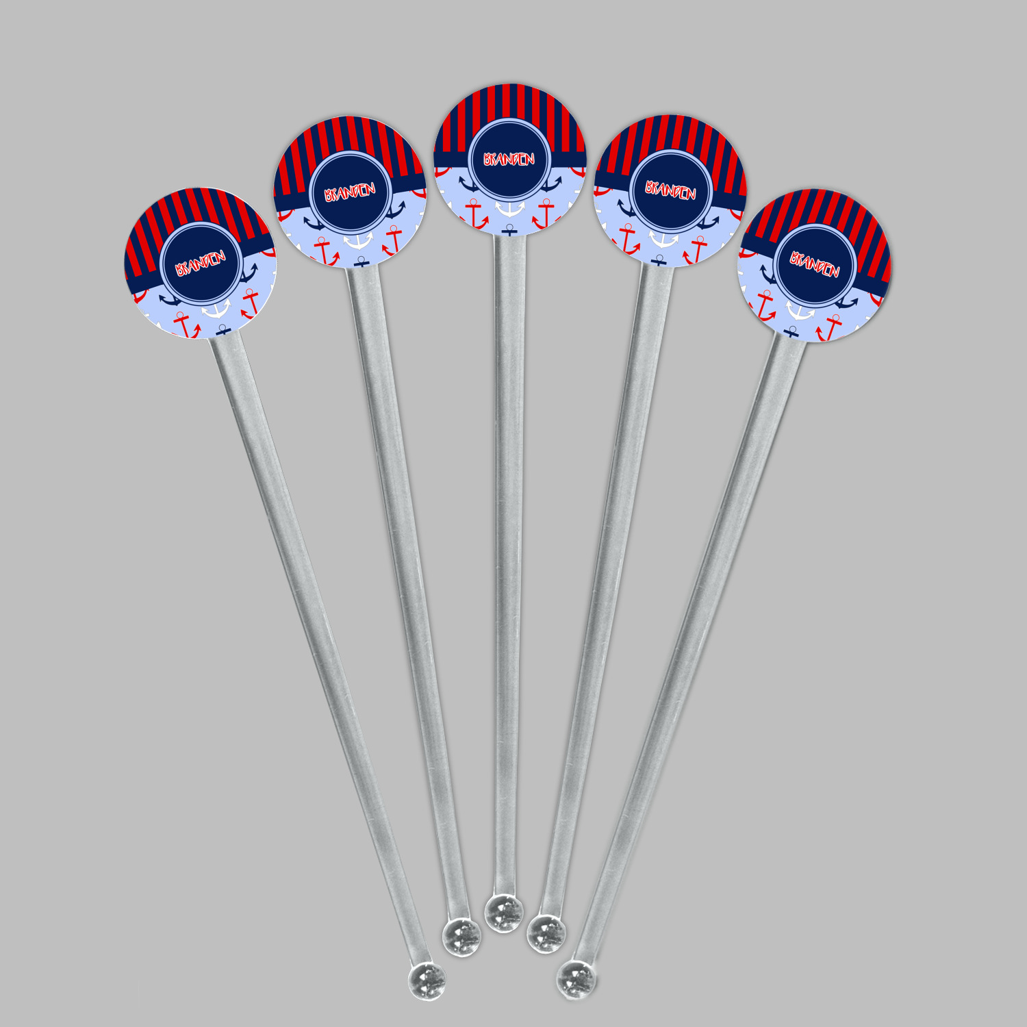 Coastal / Beach Style Designs for 7" Round Plastic Stir Sticks - Clear