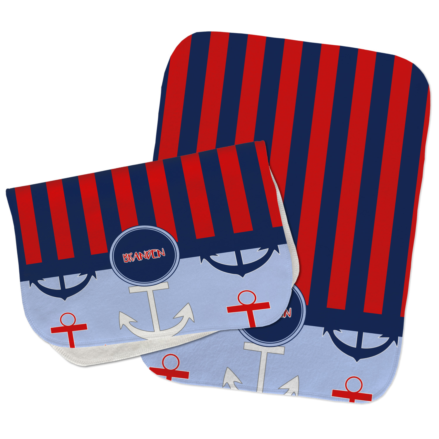 Choose your baby burp cloth from our two styles - Fleece (rectangular) or Microfiber Velour (peanut shape). The lightweight and absorbent design makes each burp cloth multipurpose; use them as a burp pad, a lap pad, a changing table, or a spare cloth to clean up any baby mess. Your customization is displayed across the front with baby-safe ink to ensure extra comfort with a white backing.