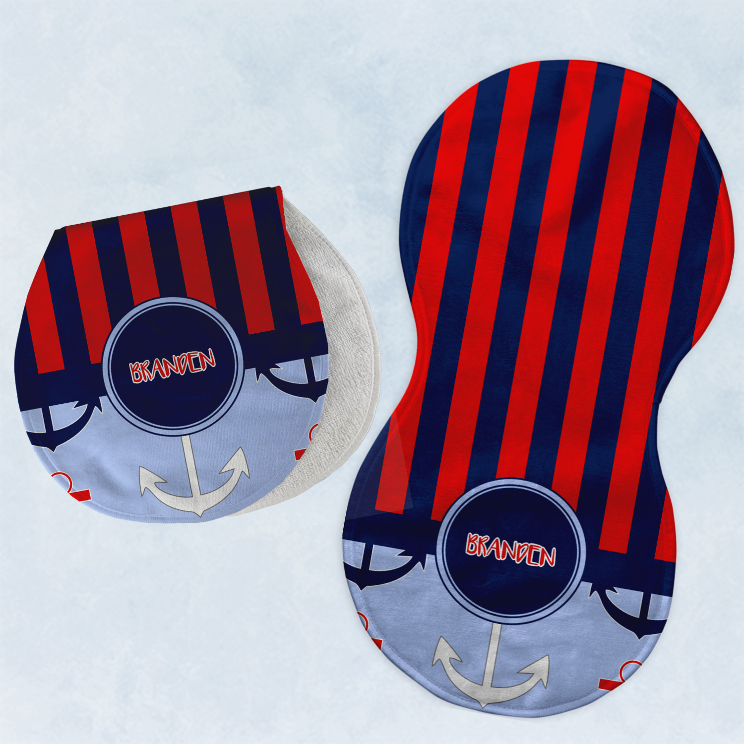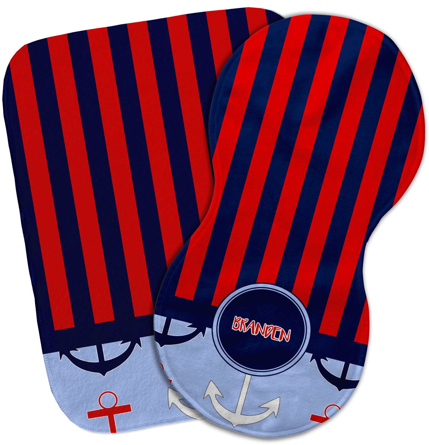 Choose your baby burp cloth from our two styles - Fleece (rectangular) or Microfiber Velour (peanut shape). The lightweight and absorbent design makes each burp cloth multipurpose; use them as a burp pad, a lap pad, a changing table, or a spare cloth to clean up any baby mess. Your customization is displayed across the front with baby-safe ink to ensure extra comfort with a white backing.