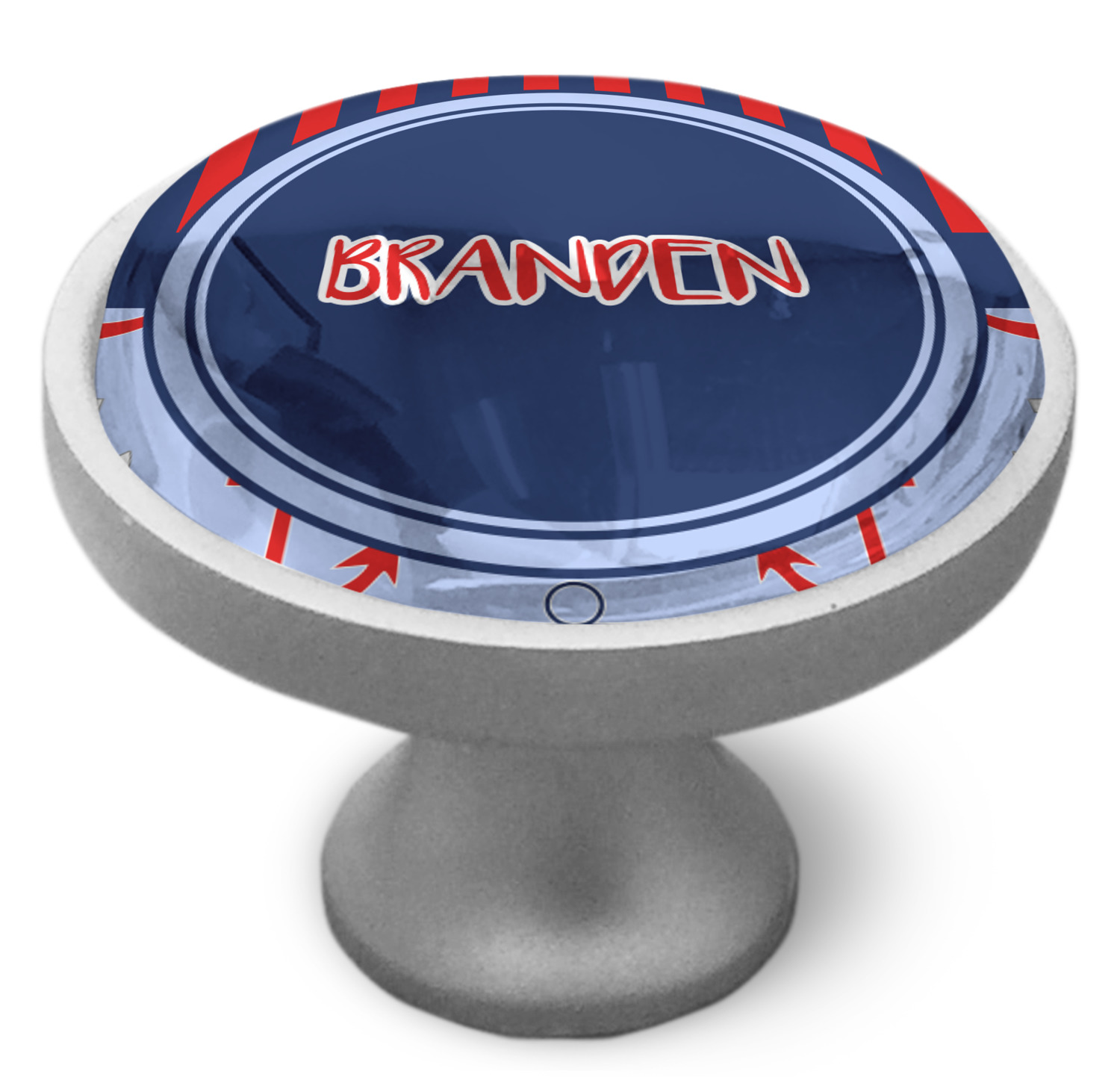 We sell these cabinet pulls in two different colors to better match your room's color scheme. We offer an oil-rubbed bronze base that is black in color, and a satin nickel option, which has a silver color. Your design is displayed across a high gloss vinyl insert that is placed on top of these cabinet handles. We then place a 1 inch thick glass cabochon atop the design, which seals the cabinet knob and makes the colors of your customization stand out. These custom cabinet knobs are approximately 1.3 inches in diameter. Your purchase includes a 1 inch screw that can be used to mount the knob to any cabinet in your home.
