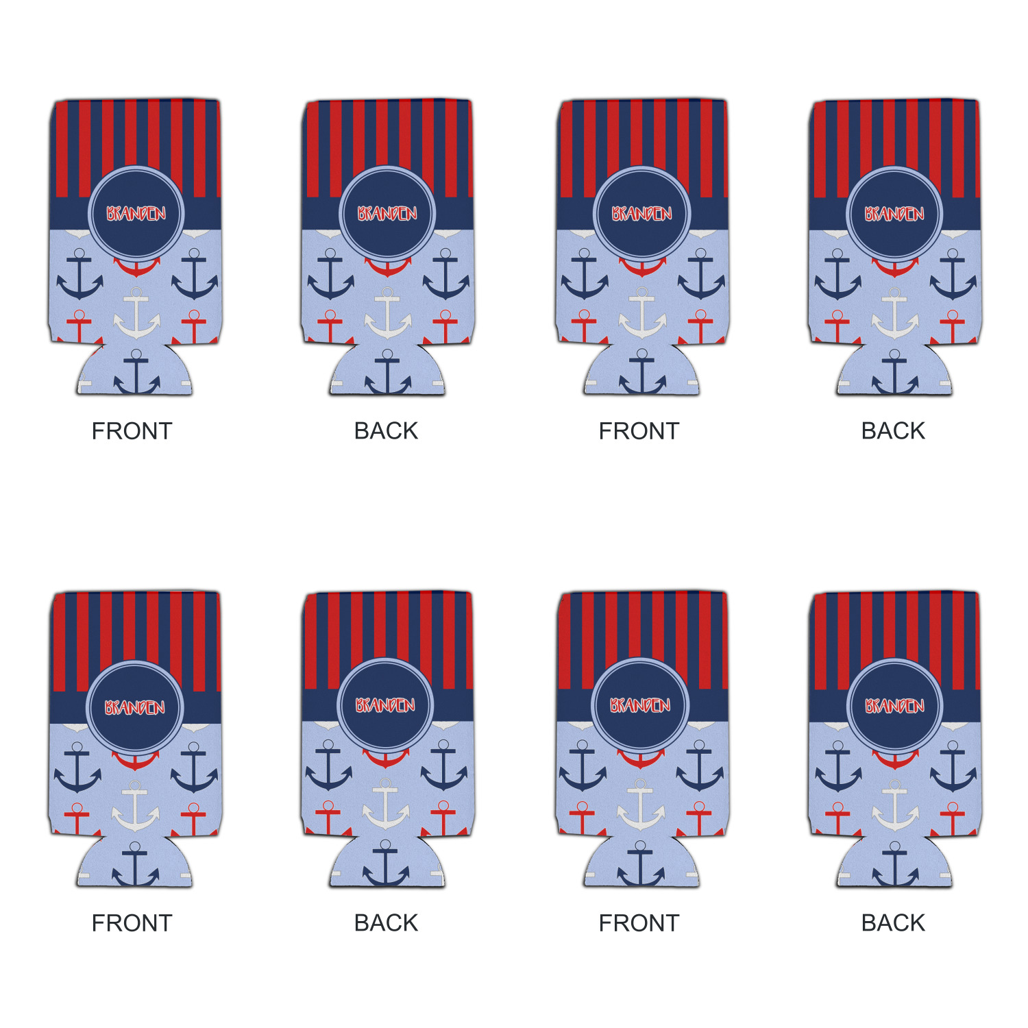 This anchor & stripes pattern is a classic nautical including the colors. We chose the classic nautical red and navy blue striped on top, with anchors in red, white and blue on the bottom. We chose a solid navy ribbon along with a circle label and personalized it with a name.