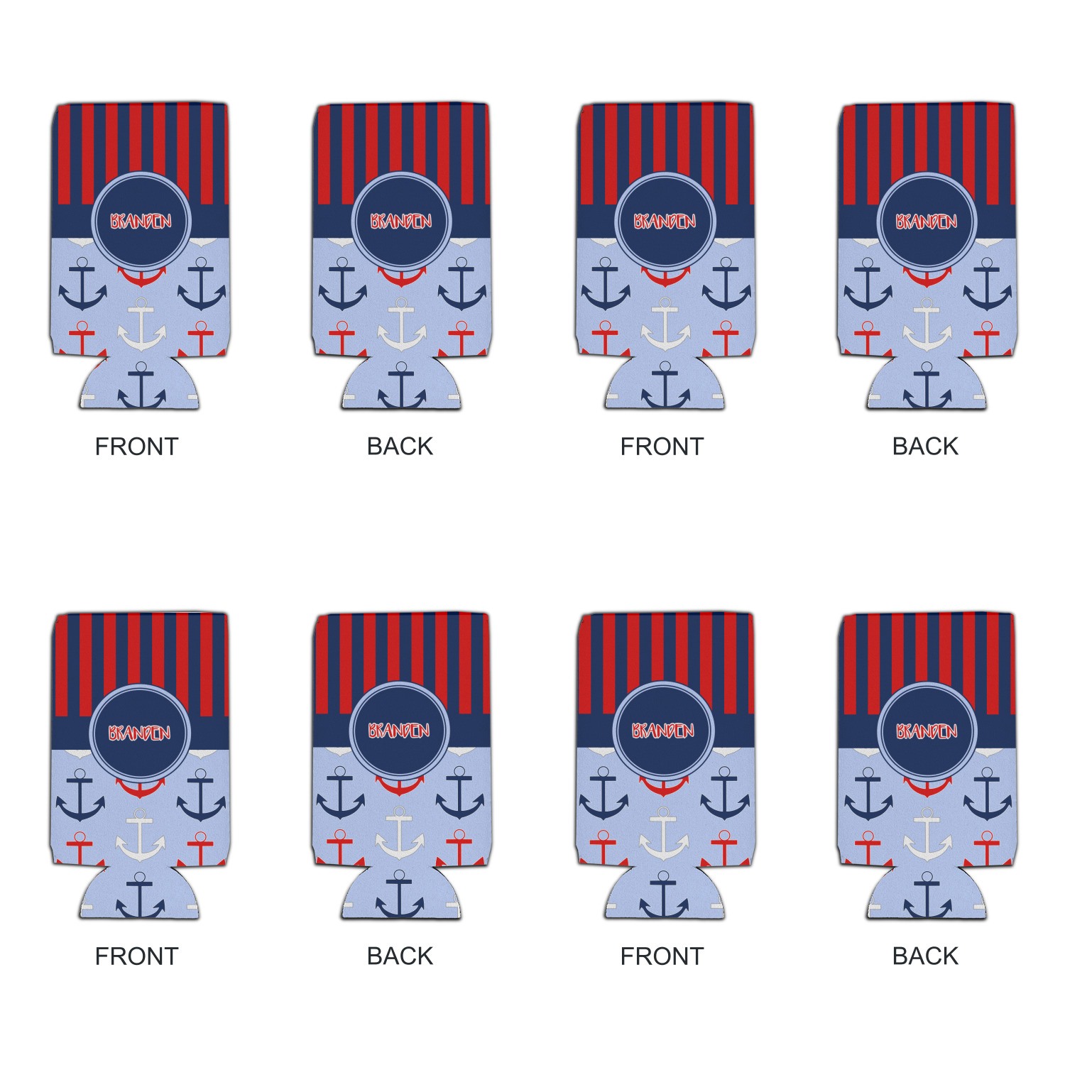 This anchor & stripes pattern is a classic nautical including the colors. We chose the classic nautical red and navy blue striped on top, with anchors in red, white and blue on the bottom. We chose a solid navy ribbon along with a circle label and personalized it with a name.