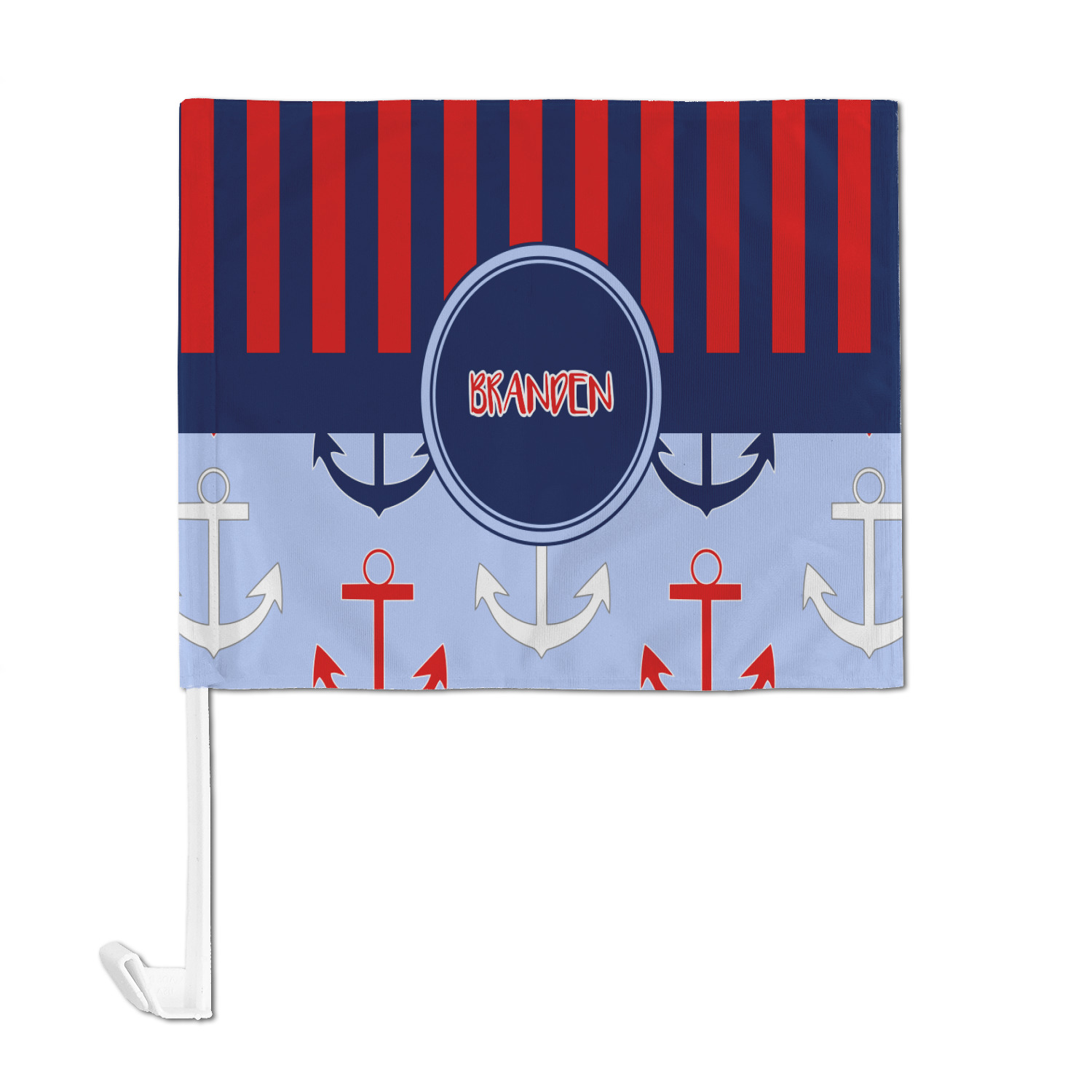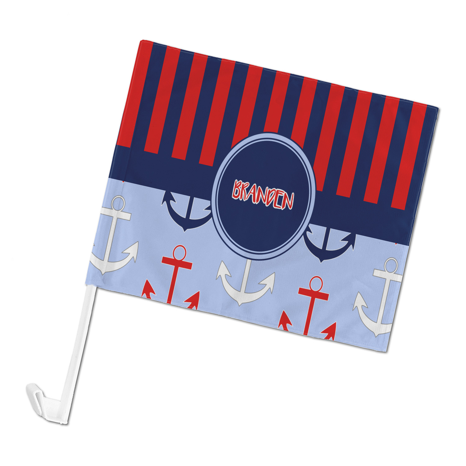 Our personalized flags are made from a durable, yet lightweight cloth that will proudly bear your logo or design of choice, while withstanding the outside elements. We have two size options - 8" x 11" and 11" x 15". Both come with a flag pole which includes a clip that secures the pole to the side window, whether it is rolled up or down. The flags are printed on both sides to display your design from all directions.