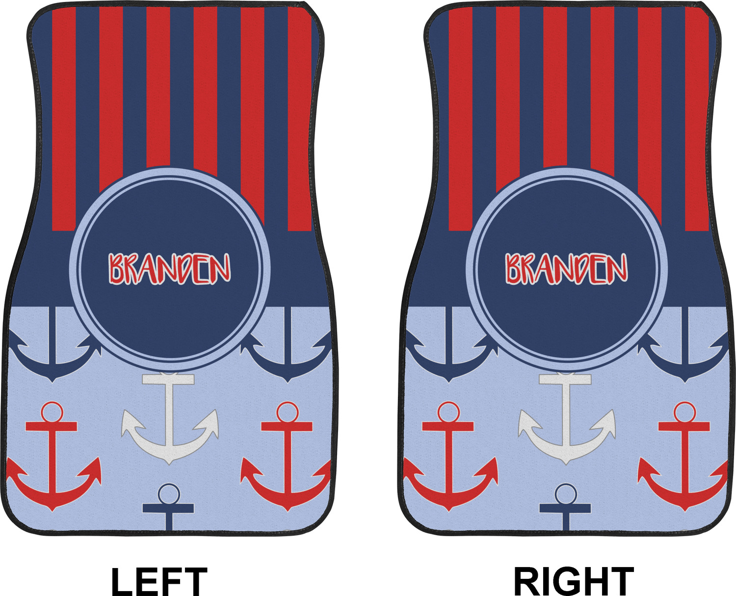 We craft our auto floor mats mats from polyester, apply a black finish to the edges, and lined at the bottom to prevent slippage. These mats protect your floors from grass, mud, and any accidental spills. We display your personalized design on the front face of each mat. The sizes of these car floor liners are standardized to provide a versatile fit for all vehicles. The front rows car mats measure at 17 by 26.5 inches, while the back rows measure at 17 by 13 inches. We sell three packages of car floor mats. You can purchase a pair of front row car mats, a pair of back row car mats, or a set of front row and back row car mats. To make an informed purchase, we recommend measuring the surface area of your car floors.