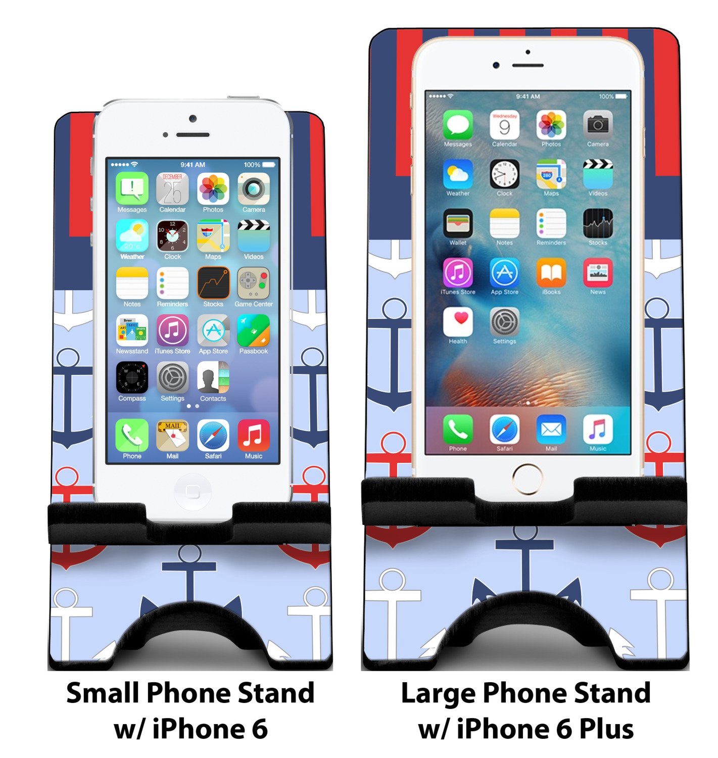 To meet your needs, we offer four variations of this IPhone stand. The backboard of the first version is shaped as a plain, yet sleek rectangle, and is available in two sizes. Our smaller size is approximately 4 by 3.25 by 7 inches, while the larger model is 4 by 3.77 by 8.5 inches. Alongside this model, we also provide you with a more decorative option. The upper part of our second version features a curved edge, for a classy, suave appearance. This phone holder is also sold in two sizes: a smaller version, which is 4 by 3.25 by 7 inches, and our larger model, which is 4 by 3.77 by 8.5 inches. Both models will support large phones, but the larger model is better if you wish to proudly display your personalized design.