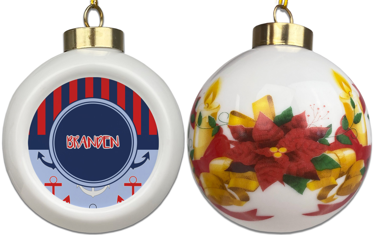 Our Christmas ornaments are a unique ceramic ball shape with a twist as it has a flat face to display your custom design! Select from one of our two design types - Christmas Tree or Poinsettia Garland - to adorn the curved back of your personal design. Each ornament measures 3H x 2.5W x 2D accompanied with a gold string accent for finishing touches to hang on your beautiful Christmas tree!