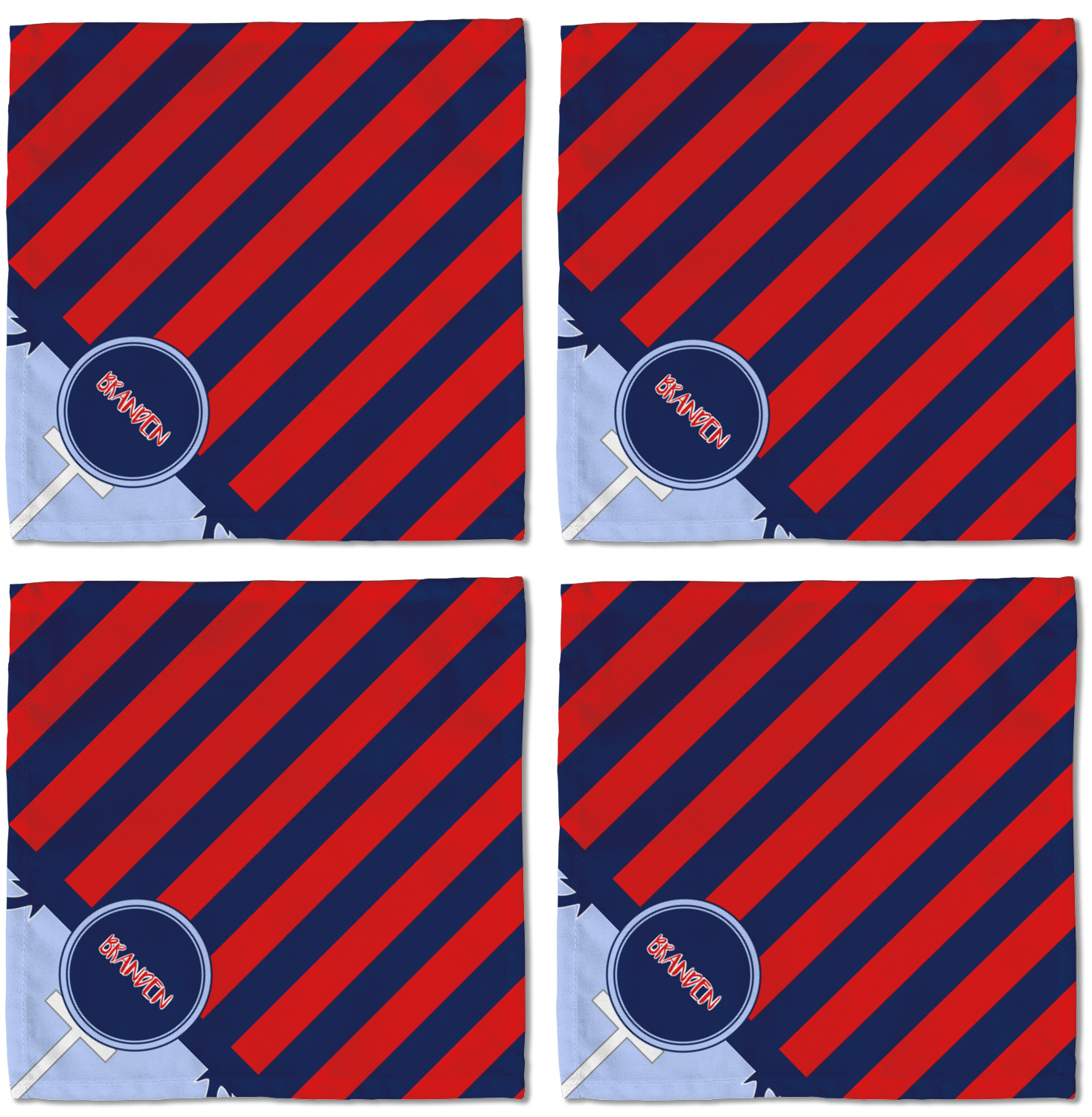 Each customizable cloth napkin is a polyester material guaranteed for long-term use. Since our napkins are cloth, it serves as a great reusable and eco-friendly dining decor. We sell personalized napkins individually or as a set of 4! Print your own unique design on all four napkins, or create four individual designs for each napkin! We offer two different napkin sizes - Cocktail napkins (approx. 10 x 10) and Dinner napkins (approx. 20 x 20). We print your design on one side, perfect for displaying your custom designed lunch napkins in any fold or table setting!