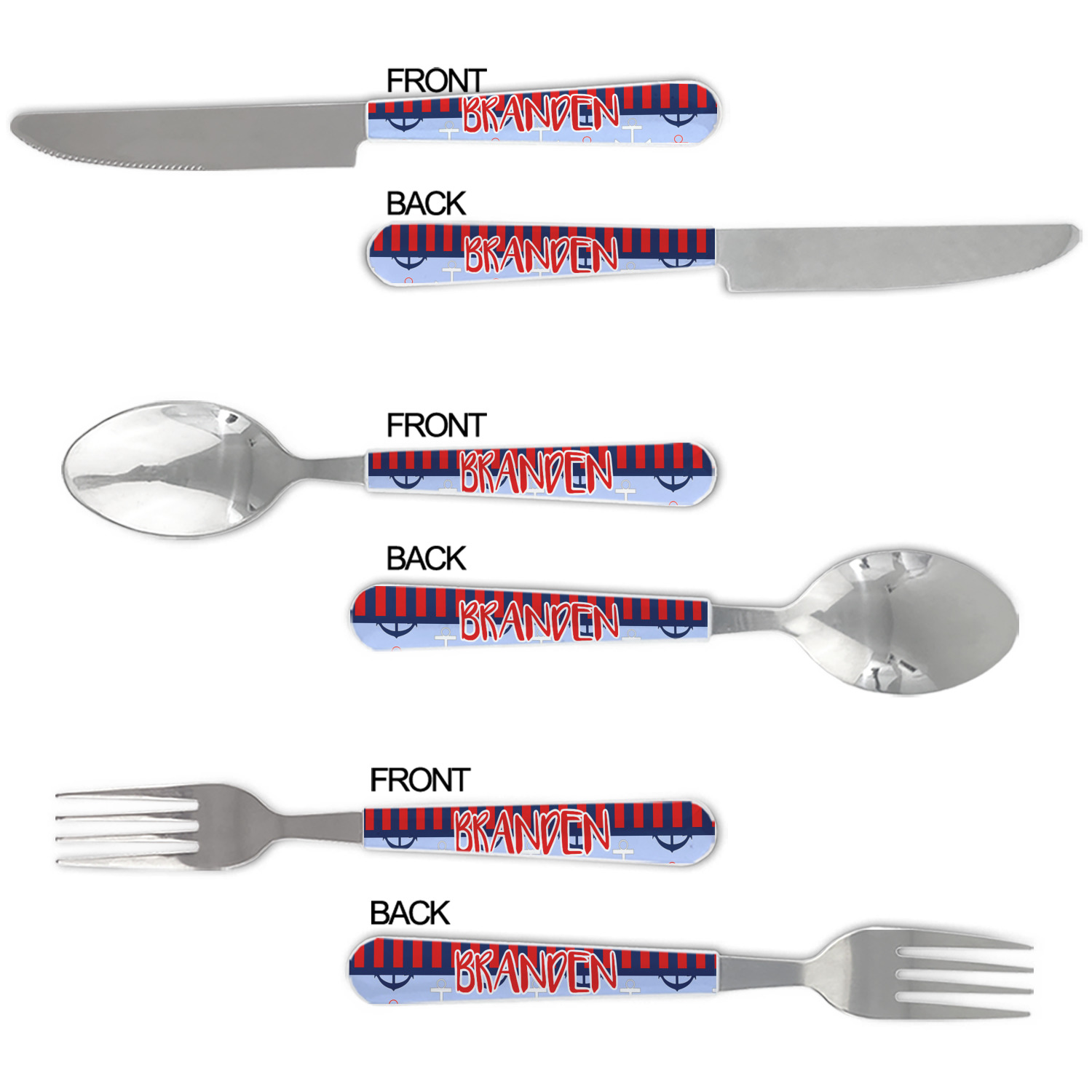 One of those items we all use on a daily basis and never give it much thought - cutlery. Having your own customized set of cutlery adds that special touch. A great addition to our custom plates and drinking pint glasses, this flatware set can be made in the same patterns to match.