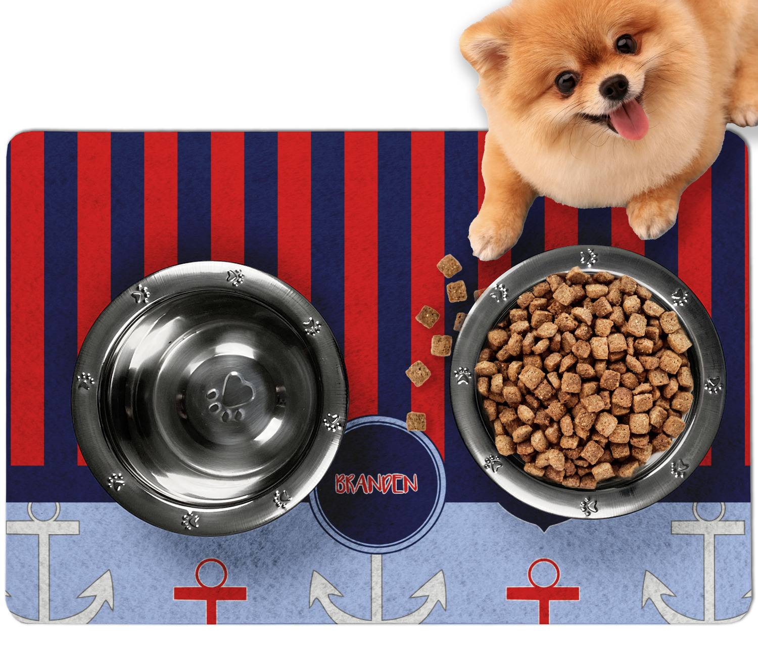 This dog bowl mat, fabricated from polyester, proudly displays your customized design on its top, while its bottom includes a non-slip rubber. This feature allows it to remain firmly in place, even when your dog spills his/her water. With 3 sizes available (18" x 12", 24" x 18", 30" x 24"), the pet food mat has ample space for both a food and water bowl for any sized dogs. Though specified for dogs' use, these mats are also a splendid option for cats.