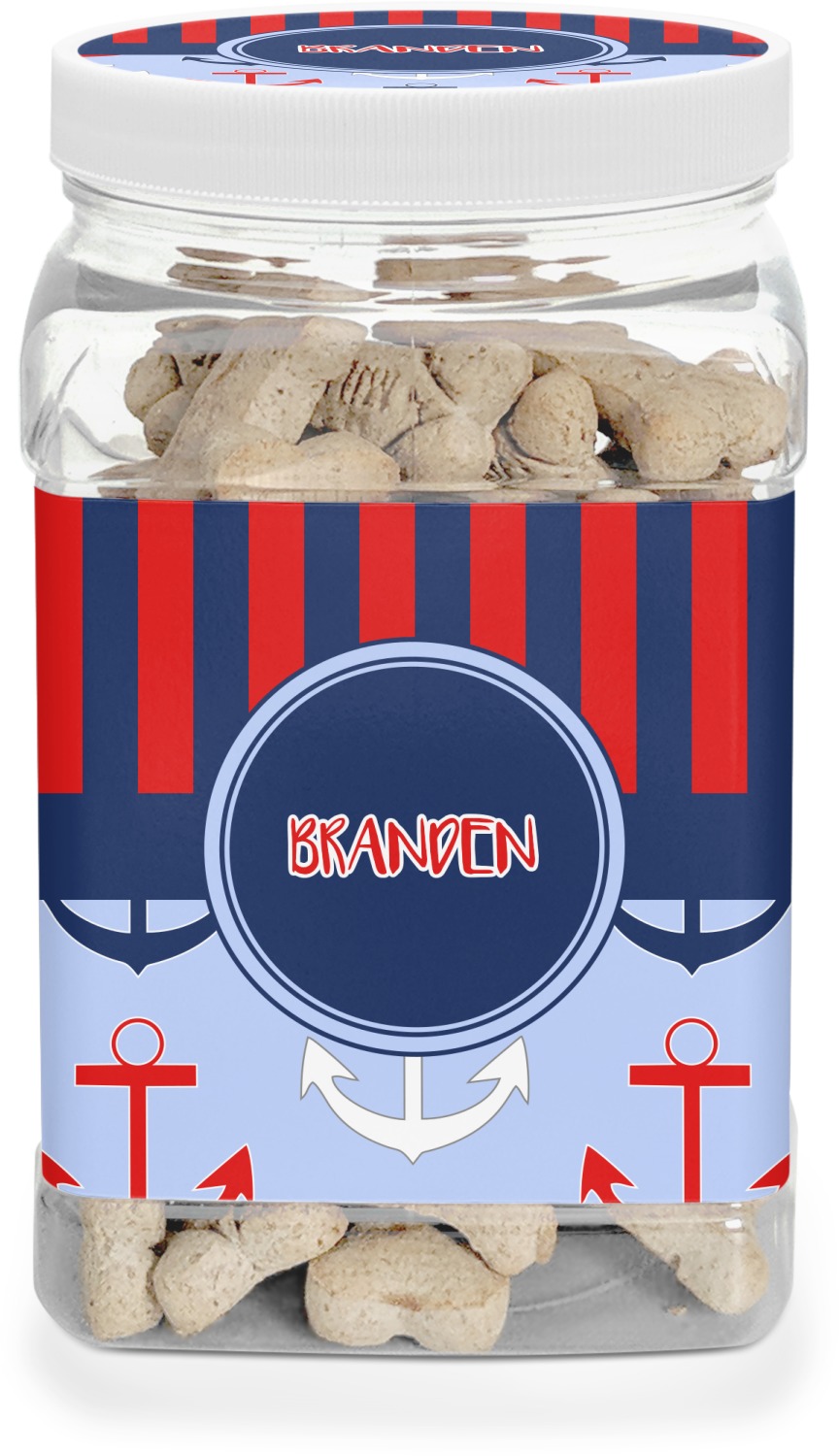 Spoil your pup with a brand new, personalized dog treat container! Your dog will be sure to wag his/her tail whenever he/she catches sight of it perched on your countertop!