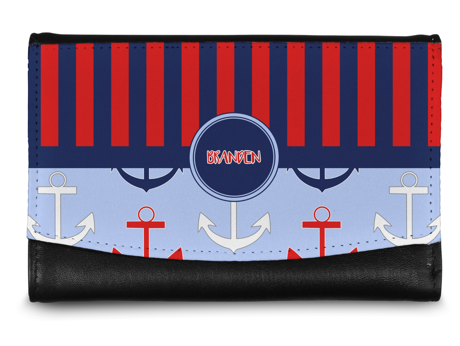 The compact size of this wallet - 5.5in wide, 3.5in tall and 0.75in thick when folded - makes it perfect to hold in hand and small enough to fit in a clutch or a normal size purse. The outside flap is customized with your choice of artwork and closes with a snap closure - with two different snaps to allow it to be adjusted when storing more items - to securely fasten the flap.