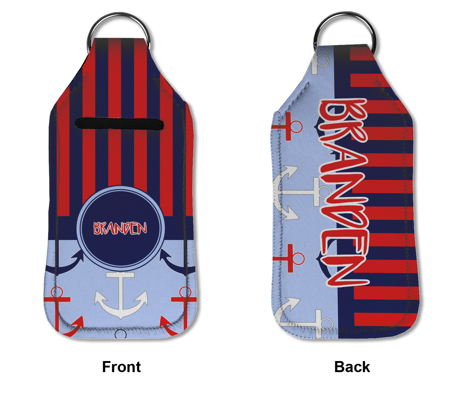Each hand sanitizer holder comes with its own empty travel-sized, refillable hand sanitizer sure to fit snug in your customized sanitizer case! Our hand sanitizer cases are a durable, yet soft neoprene material sure to last any daily activities or travel agenda. Customize and personalize a hand sanitizer bottle holder with one of our two sizes - small (4.25" x 2.25") or large (5.5" x 2.5"). Each travel sanitizer holder comes with a keyring for attachment on bags, keys, or more!