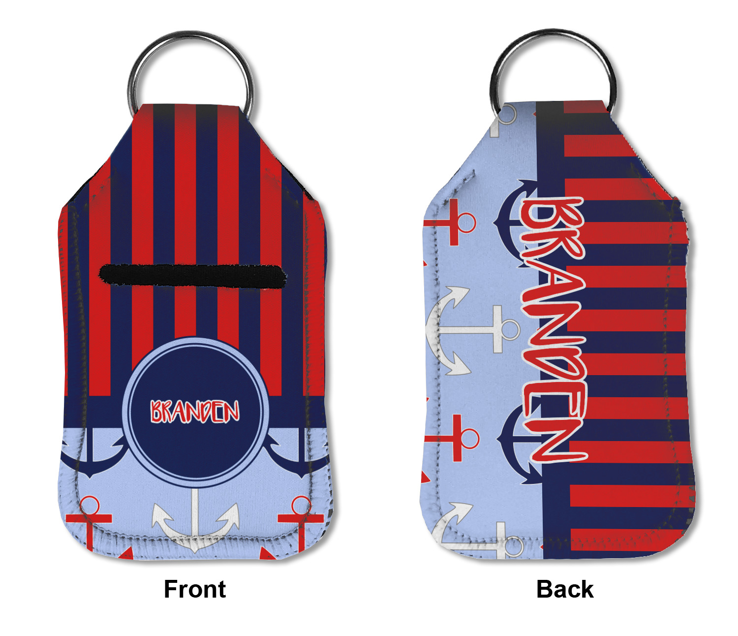 Each hand sanitizer holder comes with its own empty travel-sized, refillable hand sanitizer sure to fit snug in your customized sanitizer case! Our hand sanitizer cases are a durable, yet soft neoprene material sure to last any daily activities or travel agenda. Customize and personalize a hand sanitizer bottle holder with one of our two sizes - small (4.25" x 2.25") or large (5.5" x 2.5"). Each travel sanitizer holder comes with a keyring for attachment on bags, keys, or more!