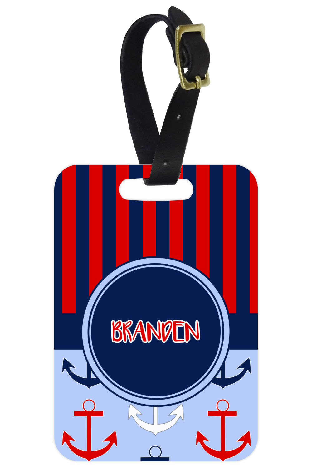 You also have the choice of customizing the tags in landscape or portrait mode. We include a leather attachment strap to easily secure the luggage tag to your bags.