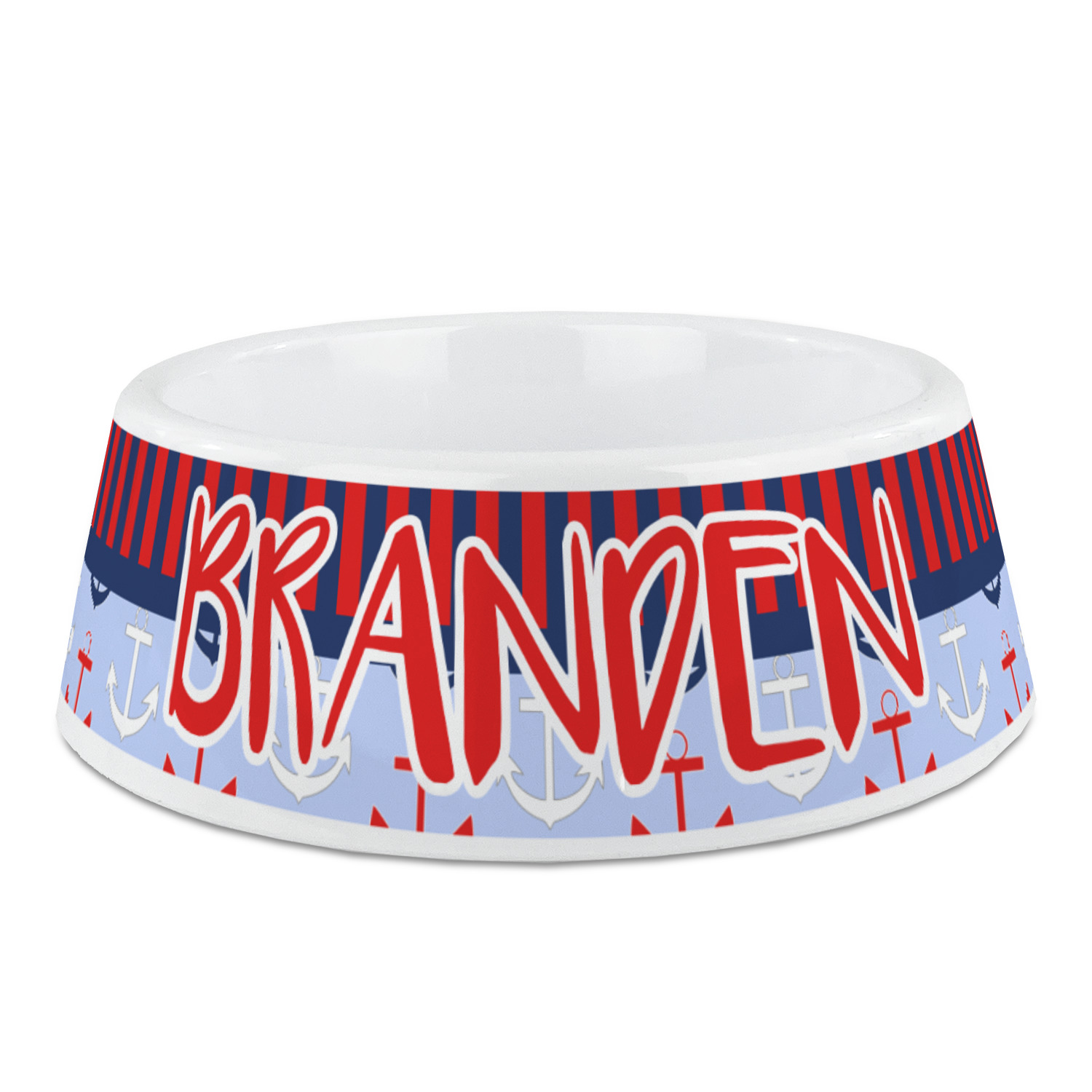 This anchor & stripes pattern is a classic nautical including the colors. We chose the classic nautical red and navy blue striped on top, with anchors in red, white and blue on the bottom. We chose a solid navy ribbon along with a circle label and personalized it with a name.
