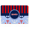 This anchor & stripes pattern is a classic nautical including the colors. We chose the classic nautical red and navy blue striped on top, with anchors in red, white and blue on the bottom. We chose a solid navy ribbon along with a circle label and personalized it with a name.