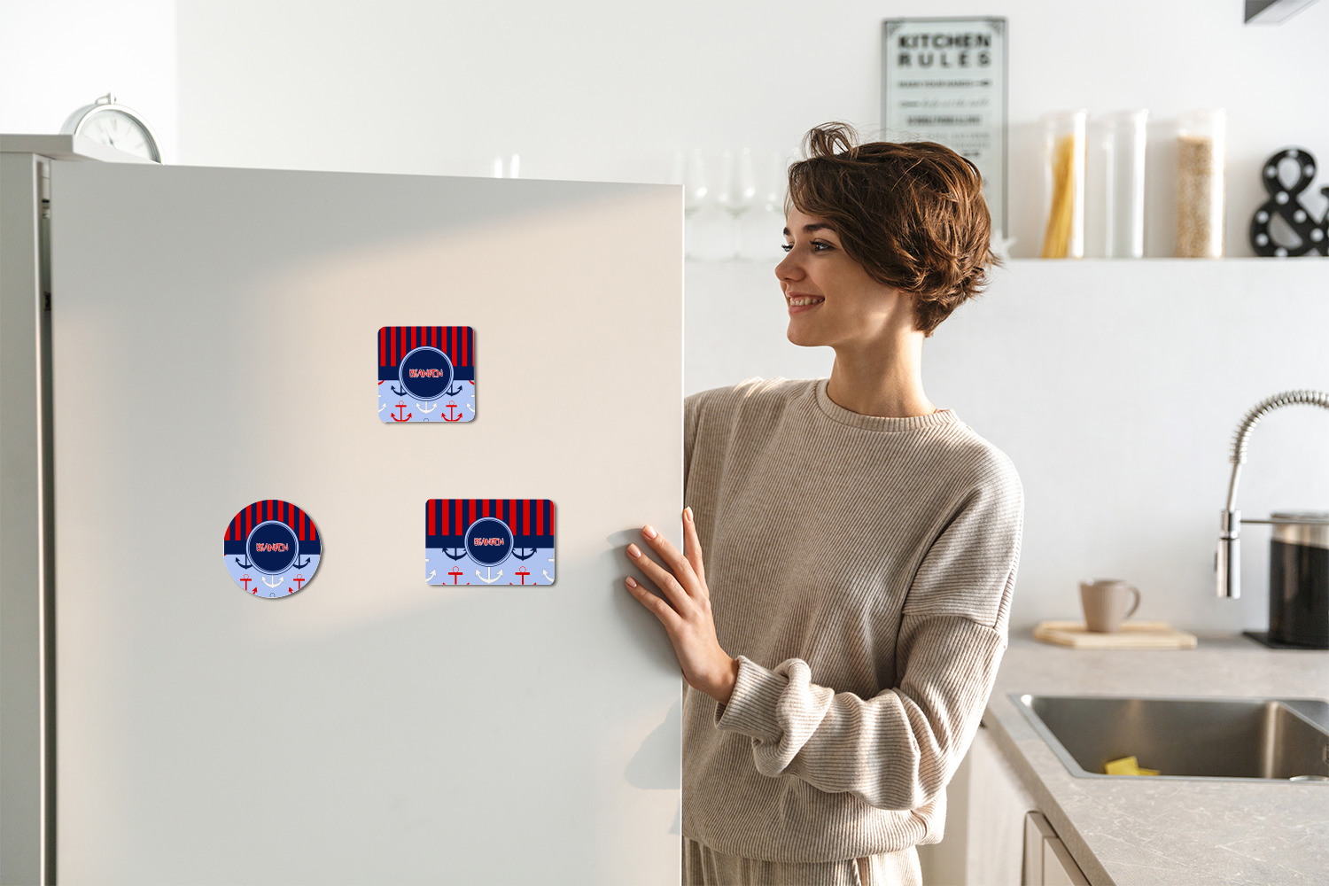 Transform your fridge from a mere, boring appliance, into a space to display your creativity with a few of our personalized fridge magnets! These useful accessories secure papers, calendars, photos, and more. Customize a few for your fridge, or give them to family and friends as gifts or keepsakes!