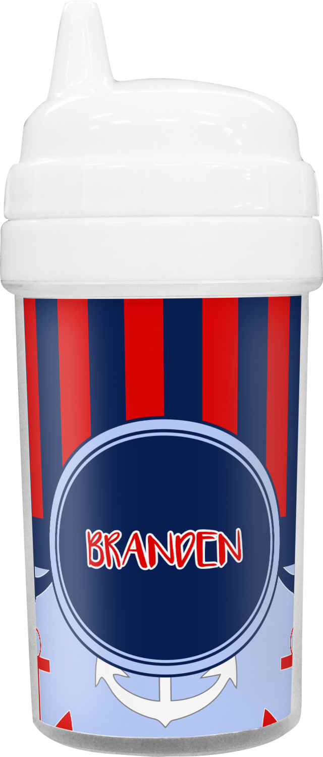 Our toddler cups are free of BPA, and have a twist-open lid so that you can easily fill and clean these cups for your young ones. Each cup also comes with a sippy nozzle to reduce spills. We offer these custom sippy cups in two different sizes; we have a baby sippy cup that holds 5 ounces, and a toddler sippy cup that holds 10 ounces. Your customization is printed on a premium glossy media insert that is placed within these toddler drinking cups.