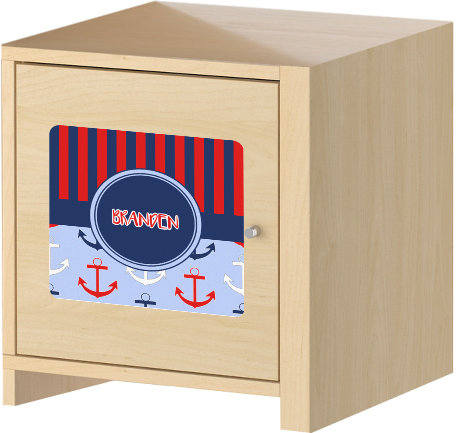 This anchor & stripes pattern is a classic nautical including the colors. We chose the classic nautical red and navy blue striped on top, with anchors in red, white and blue on the bottom. We chose a solid navy ribbon along with a circle label and personalized it with a name.