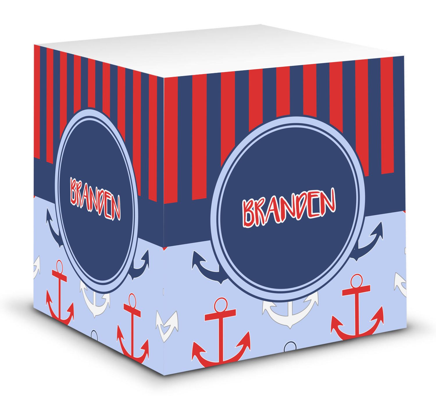 This note cube features 700 sheets of matte, white paper. Each sheet measures at 3.5 by 3.5 inches and has an adhesive strip at its top. Your personalized design is displayed on all four edges of the sticky pad.