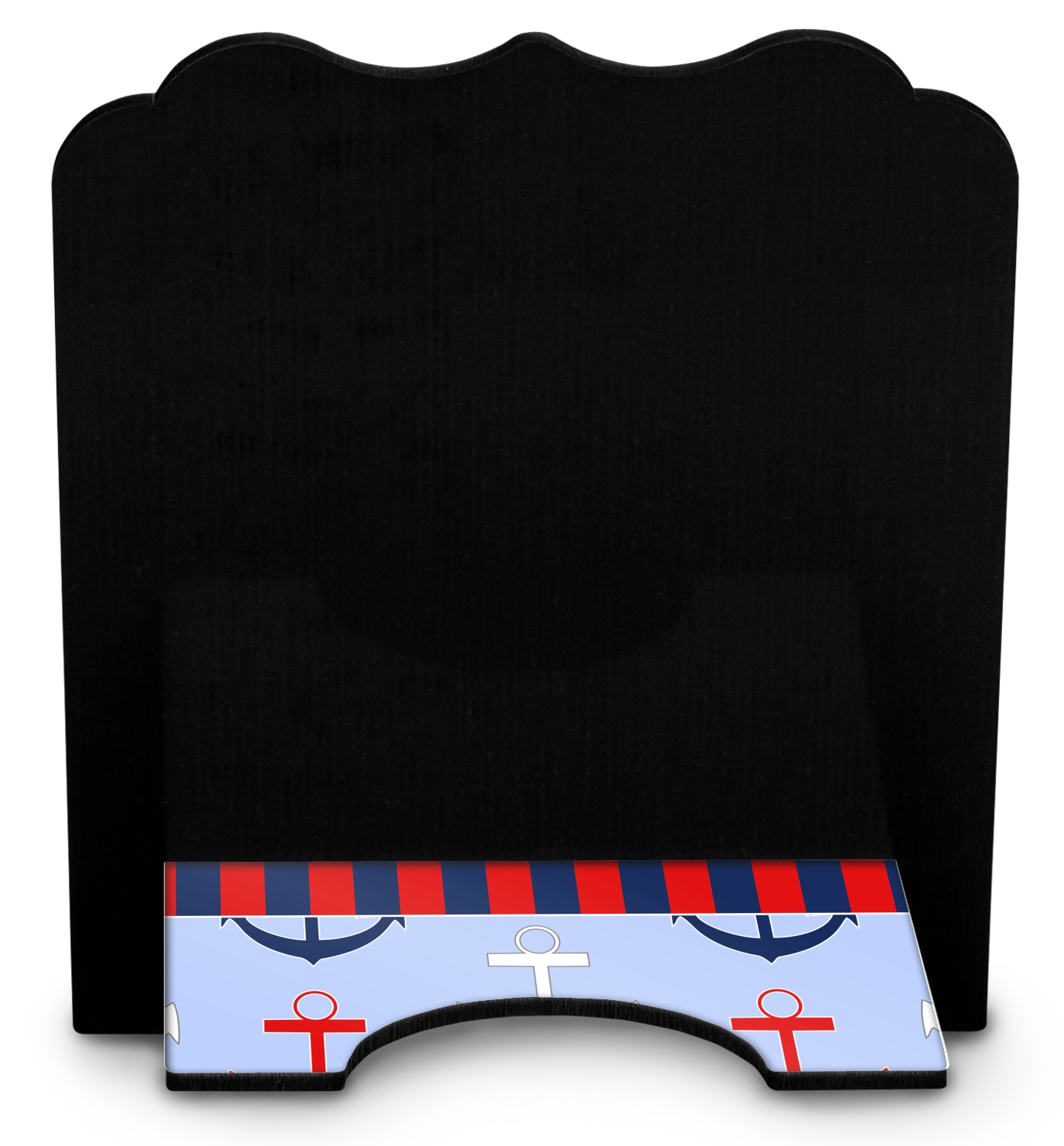 The stand is comprised of two hardboard pieces that fit snugly together and stabilize one another. The bottom part of the iPad stand supports your tablet, and has space for your tablets charger while in use. At 9.25" x 11.5", this tablet mount can support a device between the sizes of the iPad Pro and the iPad Mini 2. The uppermost part of the stand features a decorative, curved edge for a classy, suave appearance. We print your customization atop the face of the stand, in vibrant color. The remaining sides are colored a sleek black.