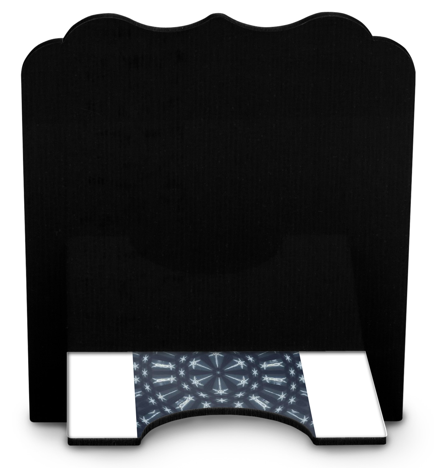 The stand is comprised of two hardboard pieces that fit snugly together and stabilize one another. The bottom part of the iPad stand supports your tablet, and has space for your tablets charger while in use. At 9.25" x 11.5", this tablet mount can support a device between the sizes of the iPad Pro and the iPad Mini 2. The uppermost part of the stand features a decorative, curved edge for a classy, suave appearance. We print your customization atop the face of the stand, in vibrant color. The remaining sides are colored a sleek black.