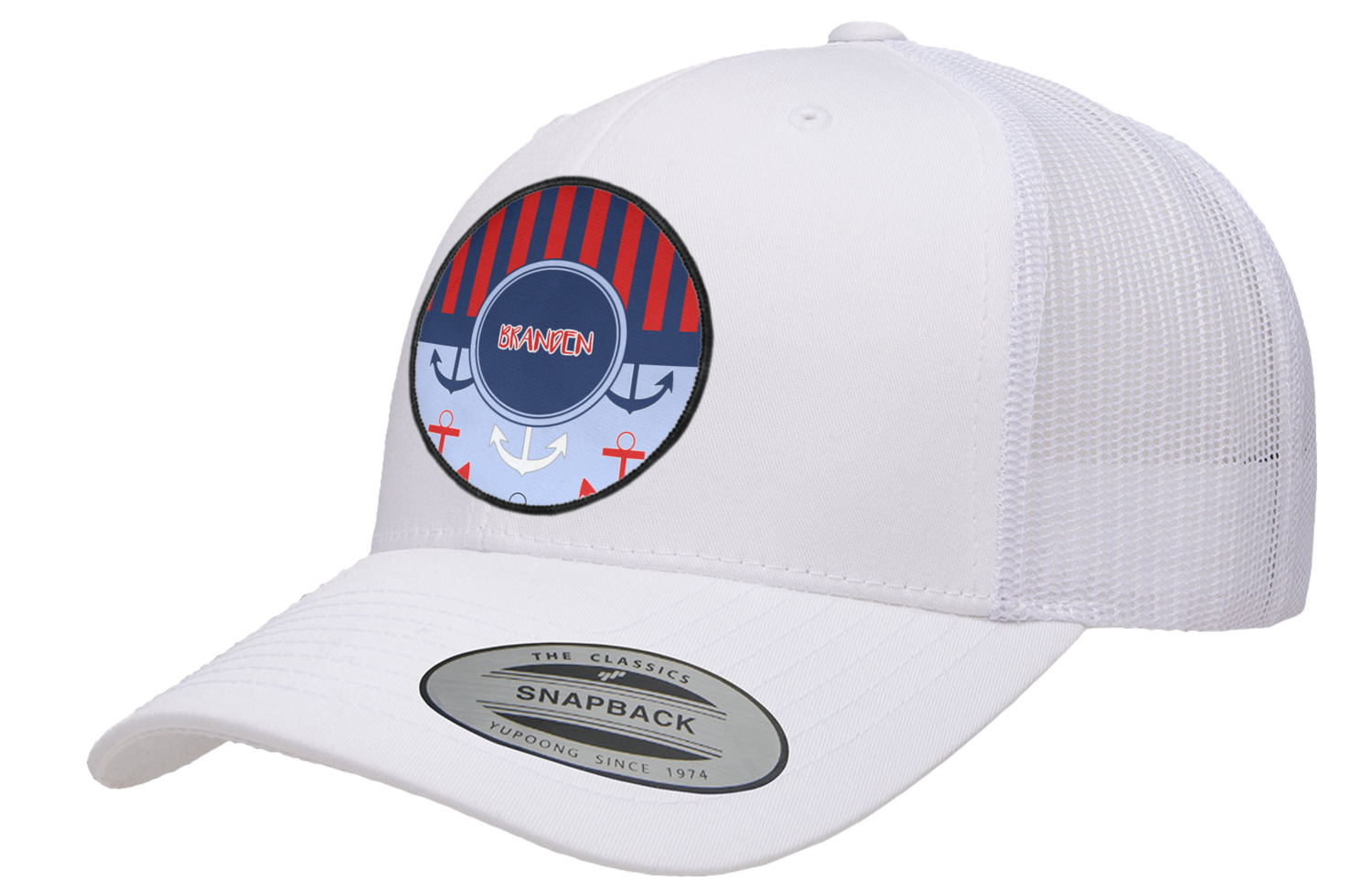 This anchor & stripes pattern is a classic nautical including the colors. We chose the classic nautical red and navy blue striped on top, with anchors in red, white and blue on the bottom. We chose a solid navy ribbon along with a circle label and personalized it with a name.