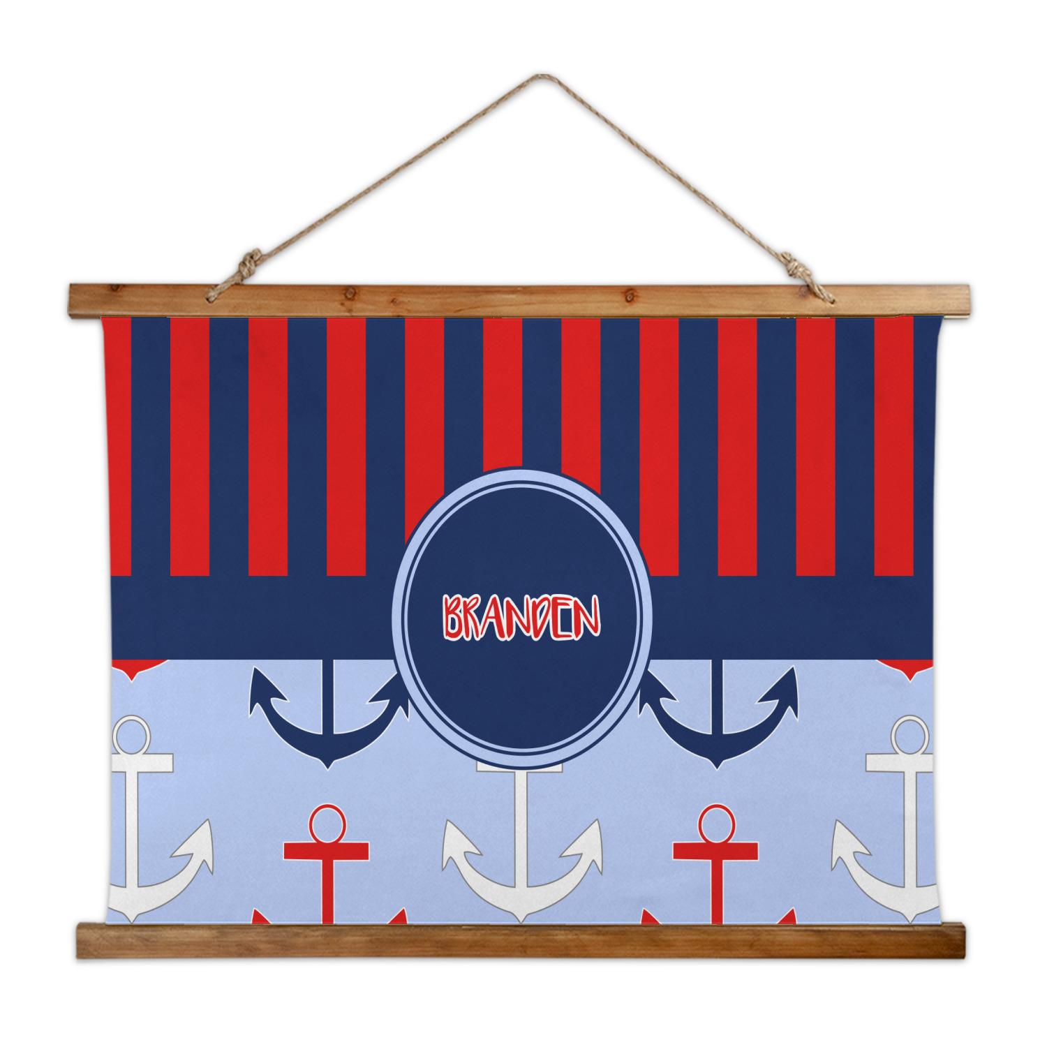 Made in two different orientations - portrait or landscape - both are 26" x 36". Your design is printed on a high quality polyester fabric with hemmed edges. The wood on the top and bottom of the tapestry is 1.25" tall and 0.25" thick and there are two pieces on top and bottom which sandwich the fabric.