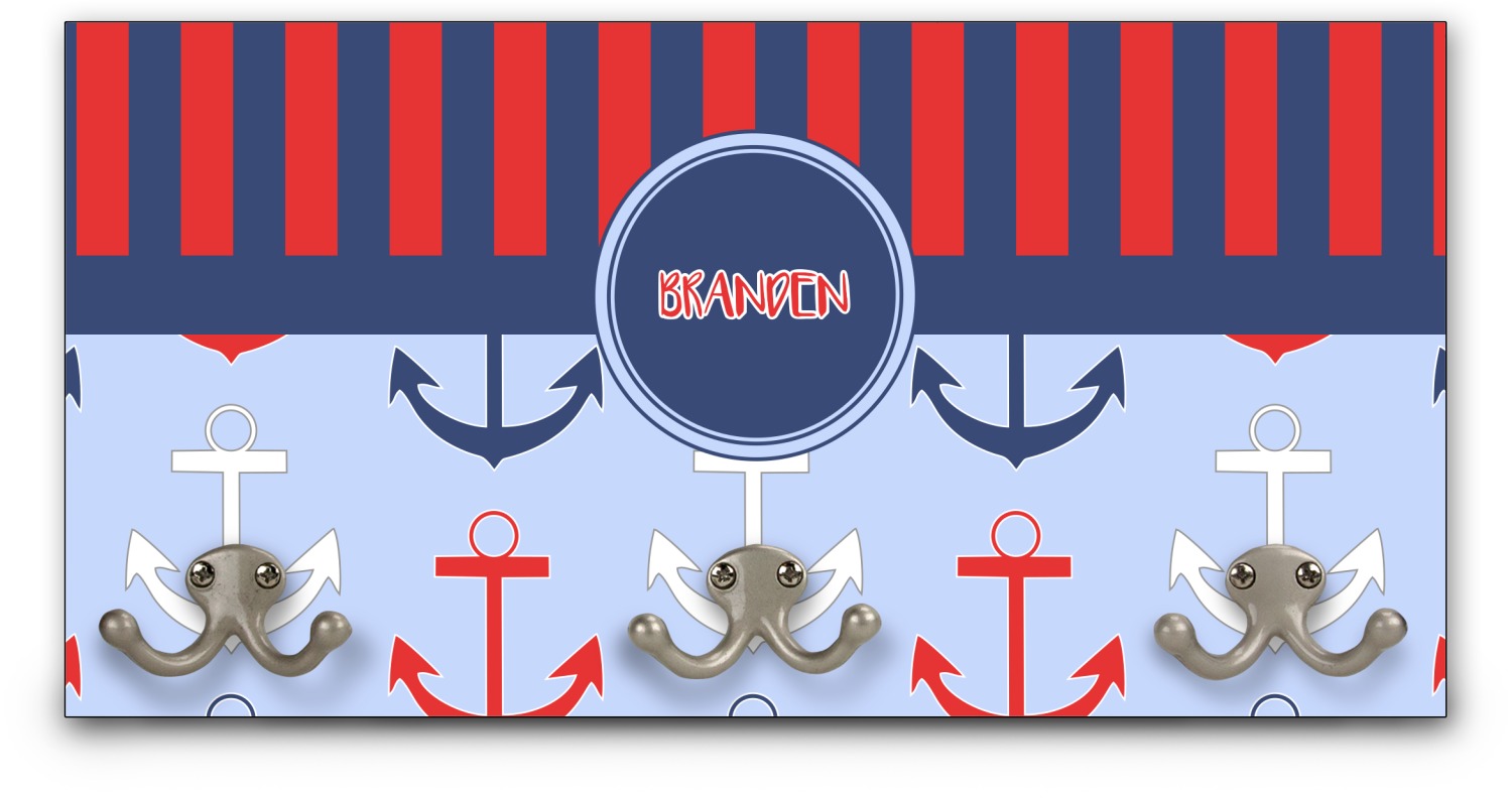 This coat rack is the perfect way to add some personality to your wall or entryway. The board is made of a strong maple that is approximately 16" x 8". The three 2-prong hooks are a sturdy metal that have three screws attaching them to the board. Your design is printed right onto the front of the board while the back and sides are a simple black.