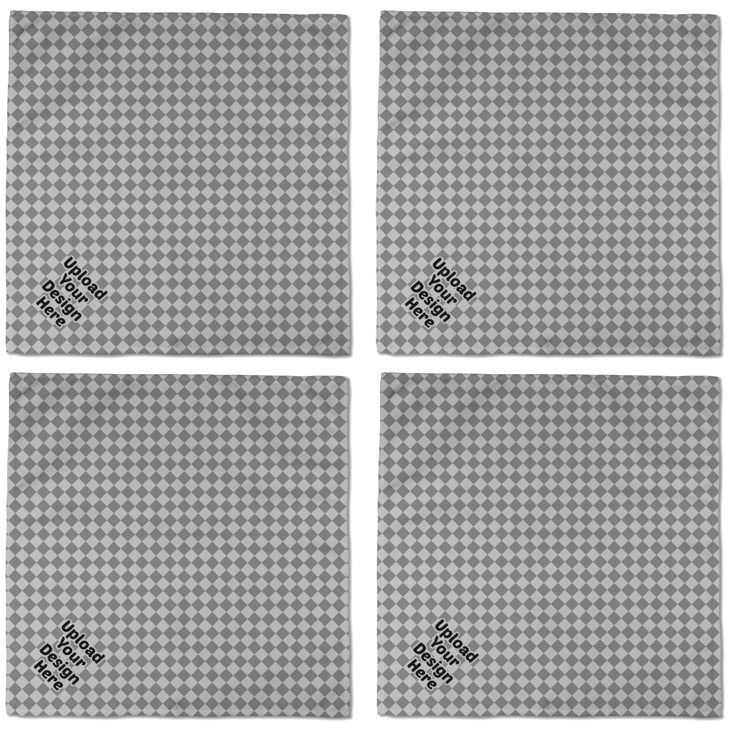 Each customizable cloth napkin is a polyester material guaranteed for long-term use. Since our napkins are cloth, it serves as a great reusable and eco-friendly dining decor. We sell personalized napkins individually or as a set of 4! Print your own unique design on all four napkins, or create four individual designs for each napkin! We offer two different napkin sizes - Cocktail napkins (approx. 10 x 10) and Dinner napkins (approx. 20 x 20). We print your design on one side, perfect for displaying your custom designed lunch napkins in any fold or table setting!