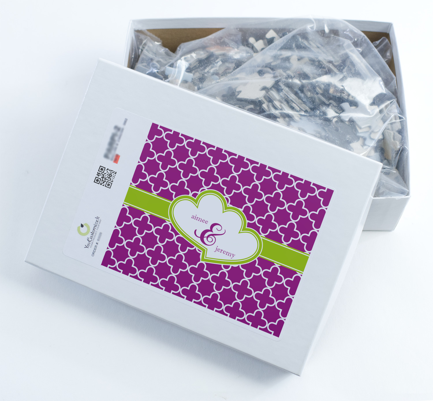 Depending on the look you are trying to achieve, you can add; a thematic pattern or background, with a photo in a frame and text or personalization to your puzzle. Basically if you can imagine it, you can design it!