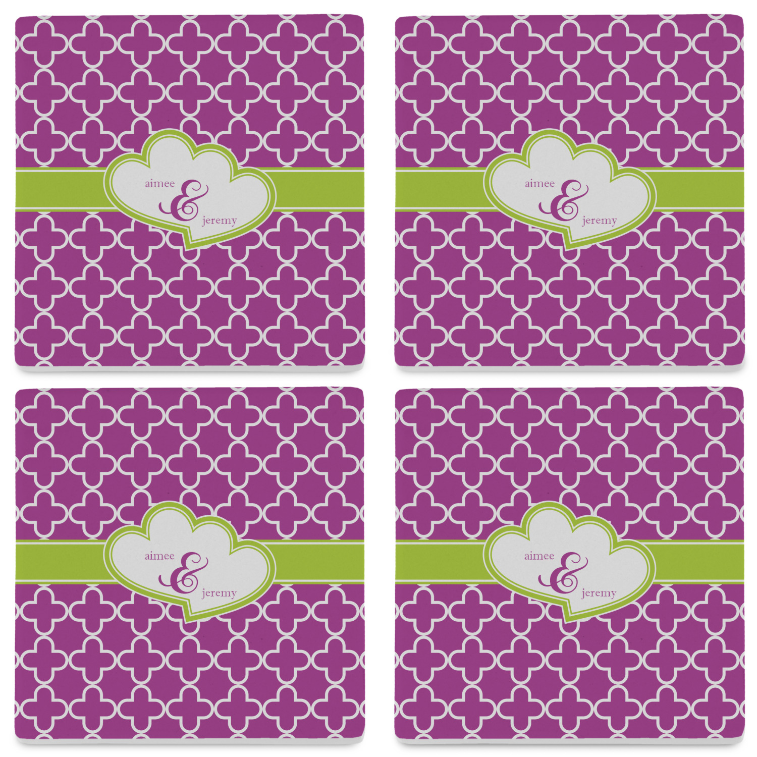 By default, the 4 coasters all have the same design on them, however, you can change that and have a different design on each one of the 4 coasters. The choice is yours.