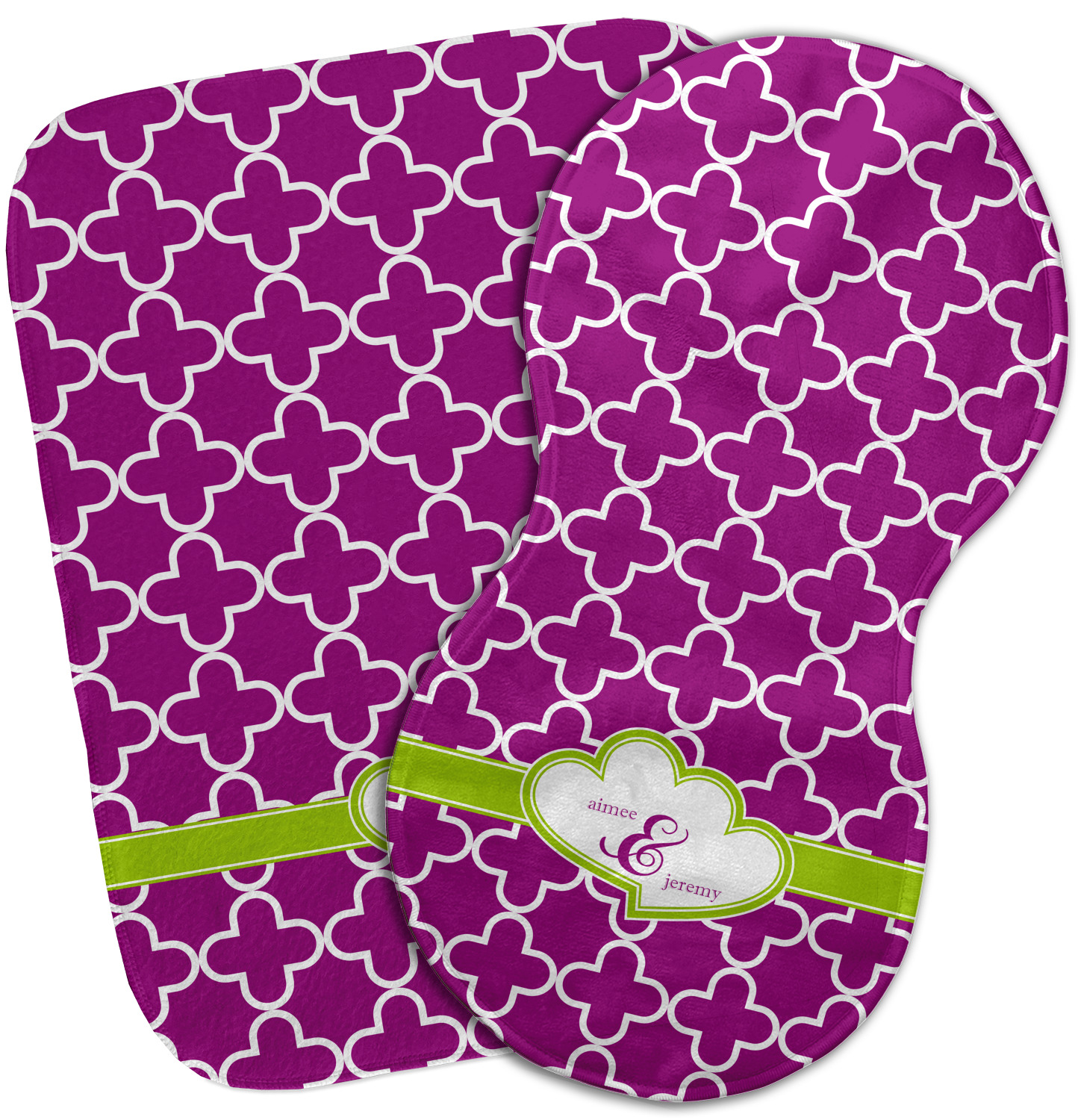 Choose your baby burp cloth from our two styles - Fleece (rectangular) or Microfiber Velour (peanut shape). The lightweight and absorbent design makes each burp cloth multipurpose; use them as a burp pad, a lap pad, a changing table, or a spare cloth to clean up any baby mess. Your customization is displayed across the front with baby-safe ink to ensure extra comfort with a white backing.