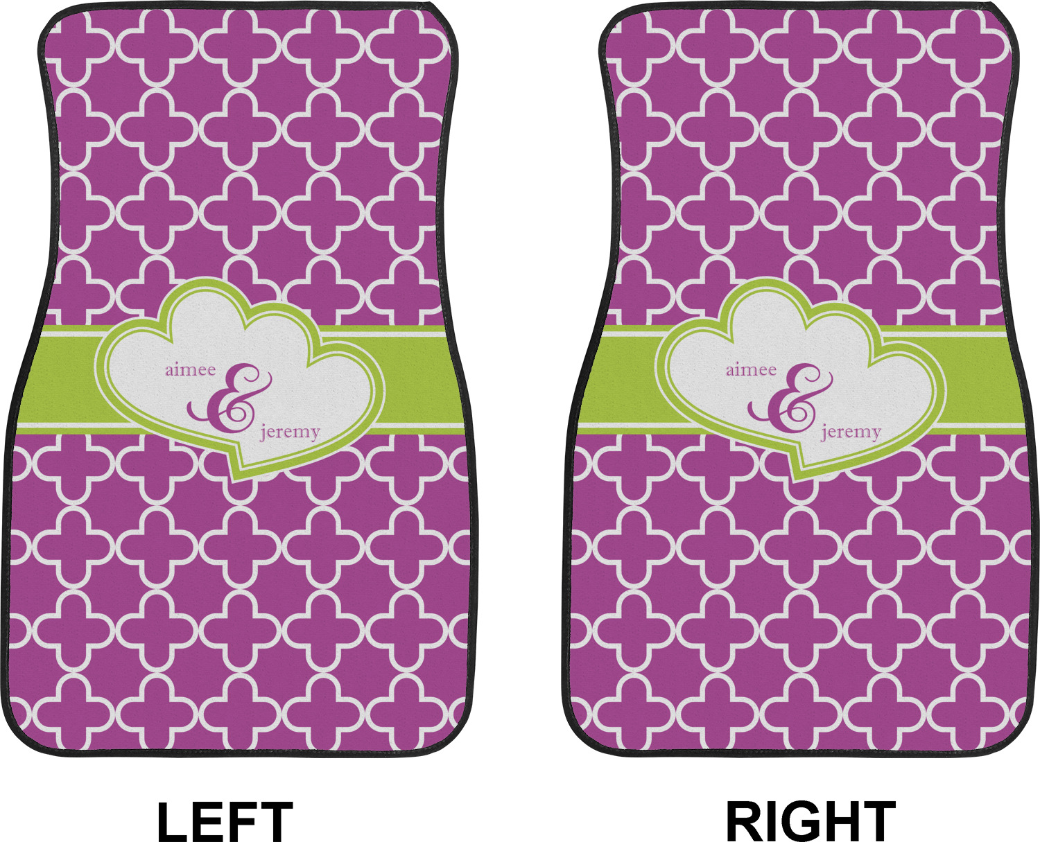 We craft our auto floor mats mats from polyester, apply a black finish to the edges, and lined at the bottom to prevent slippage. These mats protect your floors from grass, mud, and any accidental spills. We display your personalized design on the front face of each mat. The sizes of these car floor liners are standardized to provide a versatile fit for all vehicles. The front rows car mats measure at 17 by 26.5 inches, while the back rows measure at 17 by 13 inches. We sell three packages of car floor mats. You can purchase a pair of front row car mats, a pair of back row car mats, or a set of front row and back row car mats. To make an informed purchase, we recommend measuring the surface area of your car floors.