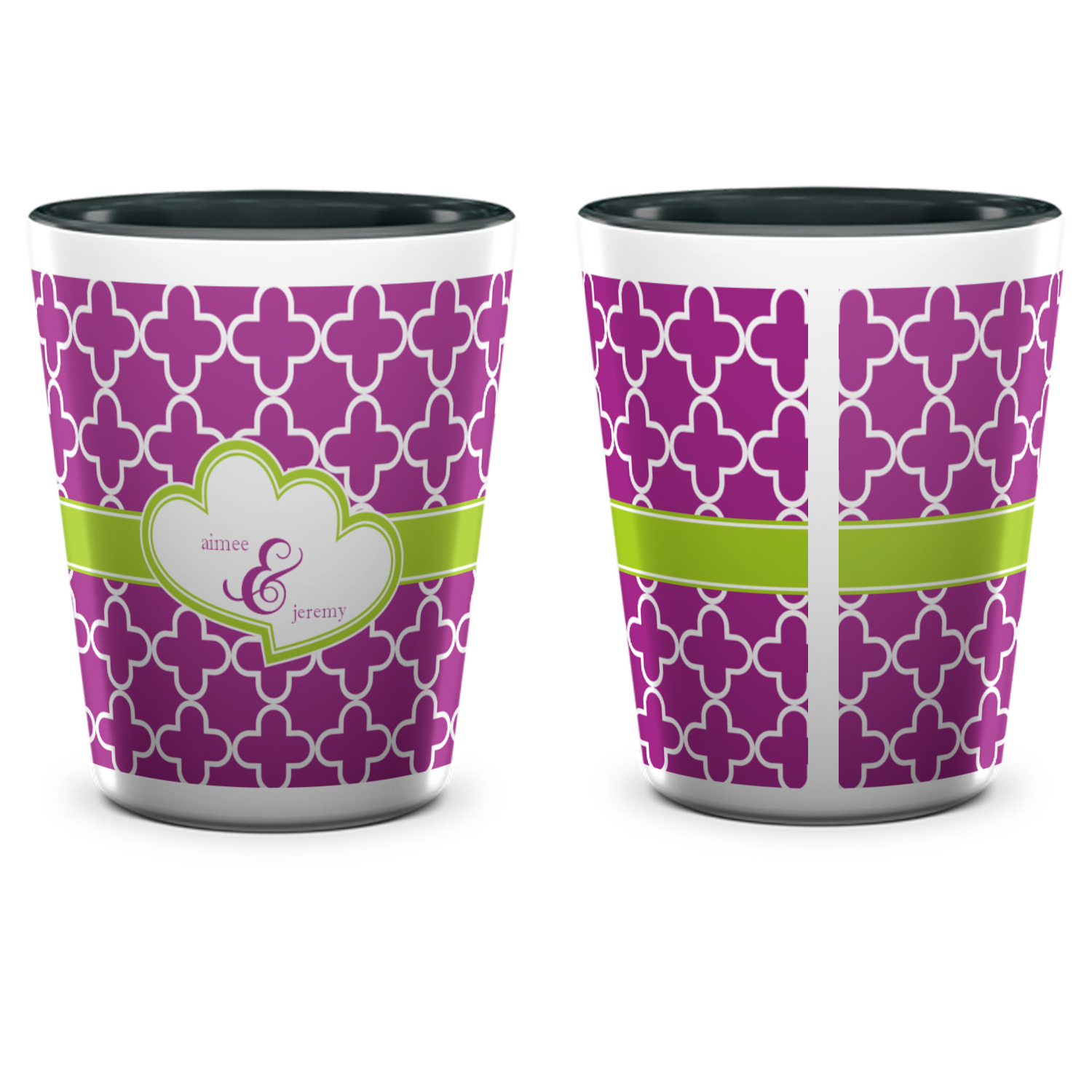 Made from ceramic these shot glasses are printed in full color with the design of your choice. These are a standard 1.5oz size and stand 2.25" tall. Available in a full white ceramic or a two-tone with a black color inside the shot glass. Buy a single or a set of 4, all of which can be designed separately to get you just what you want and need.