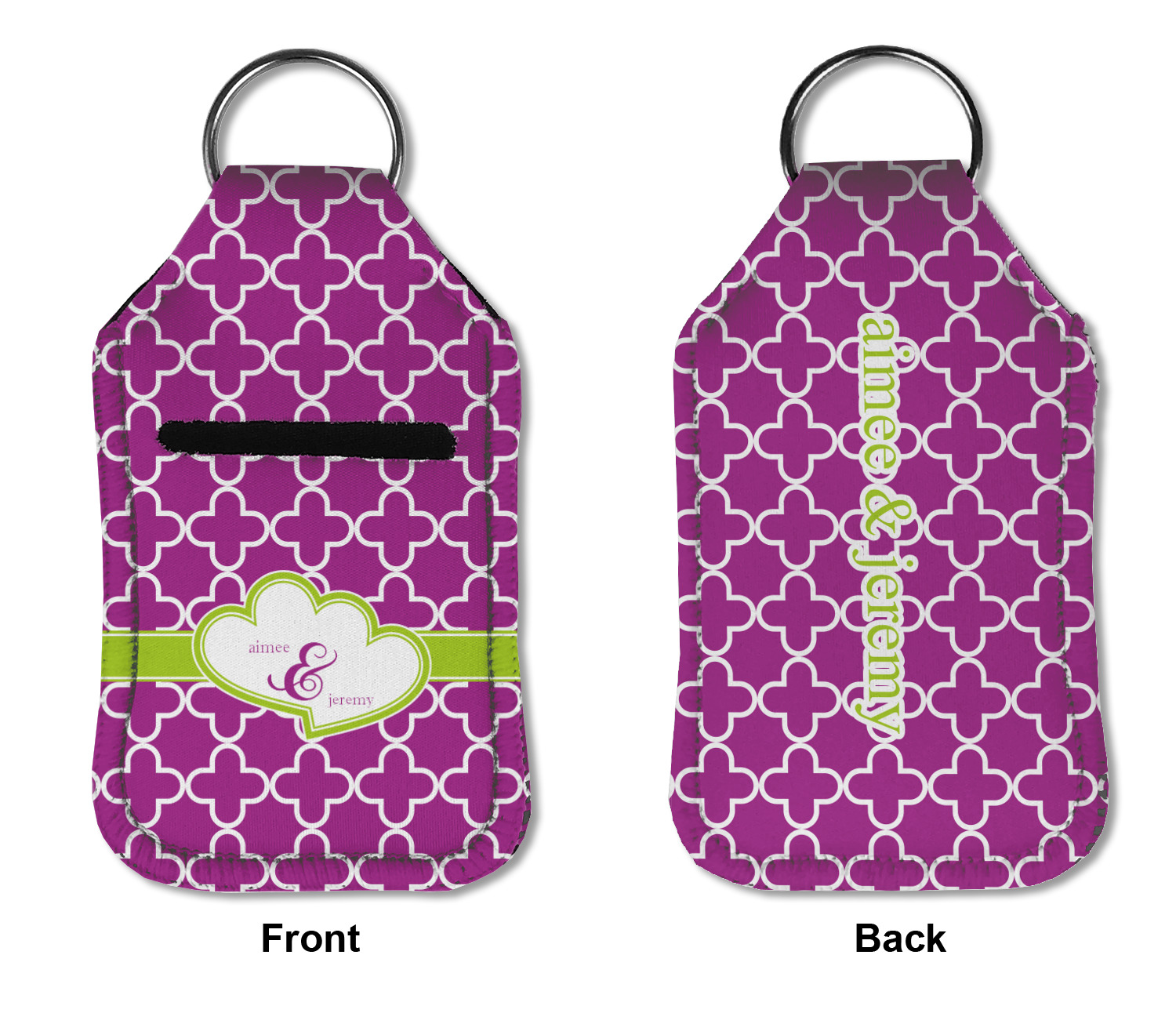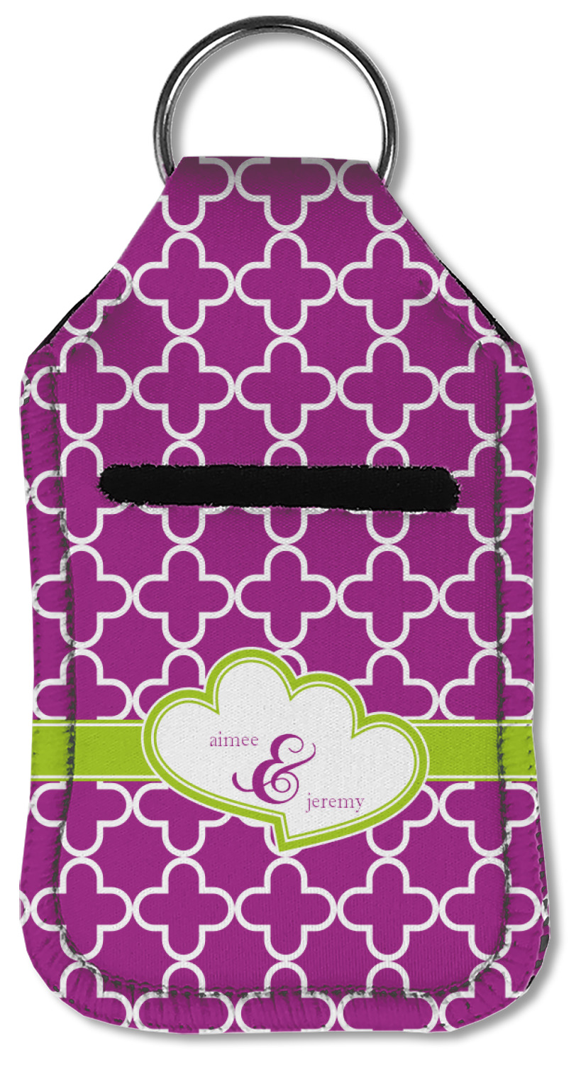 Each hand sanitizer holder comes with its own empty travel-sized, refillable hand sanitizer sure to fit snug in your customized sanitizer case! Our hand sanitizer cases are a durable, yet soft neoprene material sure to last any daily activities or travel agenda. Customize and personalize a hand sanitizer bottle holder with one of our two sizes - small (4.25" x 2.25") or large (5.5" x 2.5"). Each travel sanitizer holder comes with a keyring for attachment on bags, keys, or more!